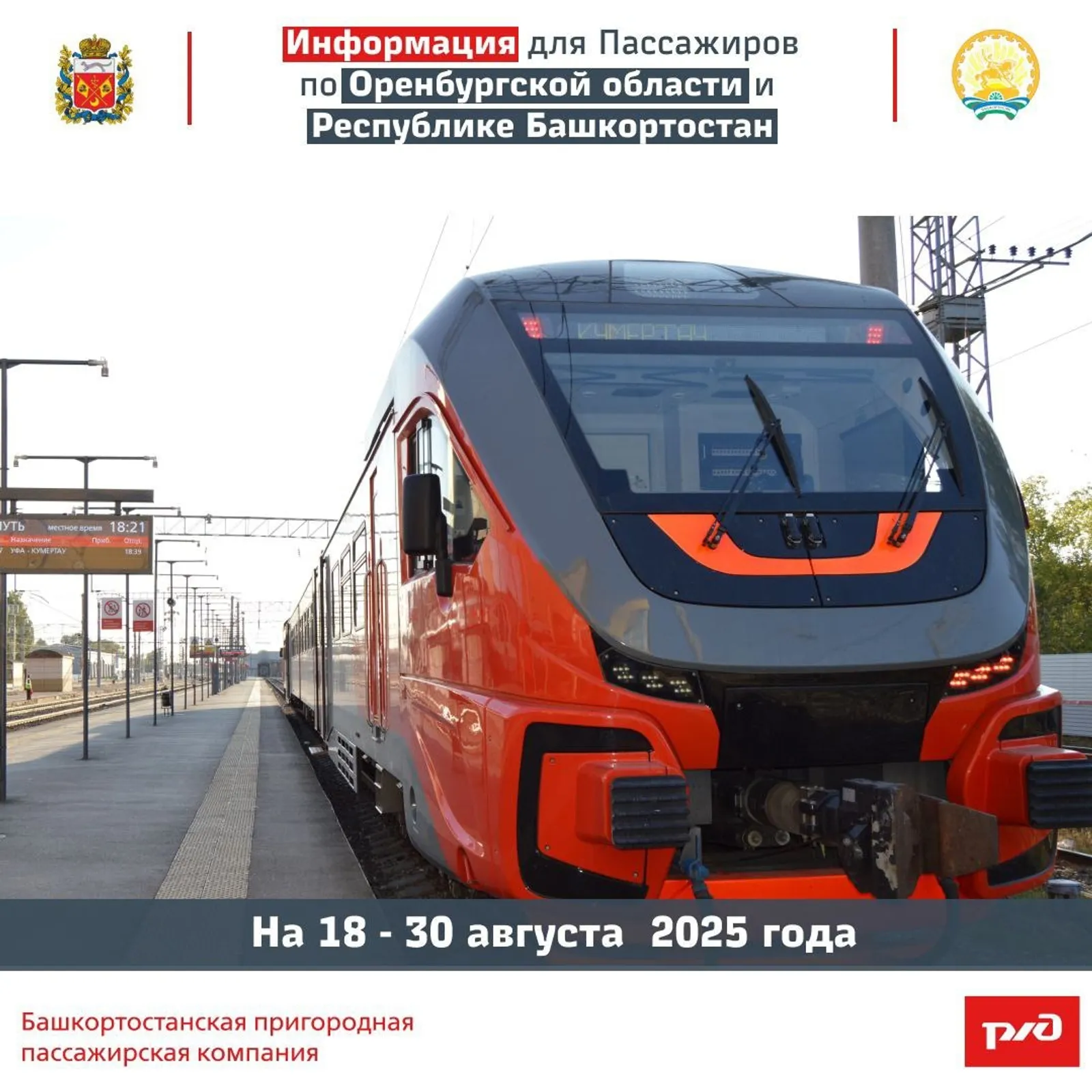 № 7444/7443/7445/7446 Оренбург (отпр. 15.06) – Кумертау (приб. 17.24, отпр.17.25) – Уфа (приб. 21.30).