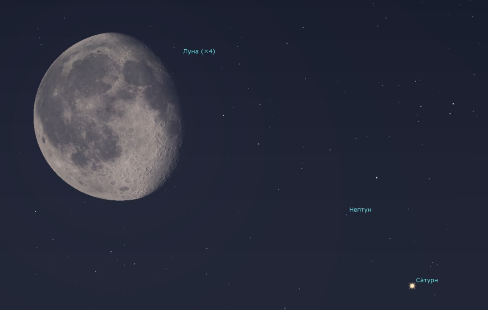 Между ними расположится Нептун. Он не виден невооруженным глазом и доступен для наблюдения только в бинокль или телескоп.
