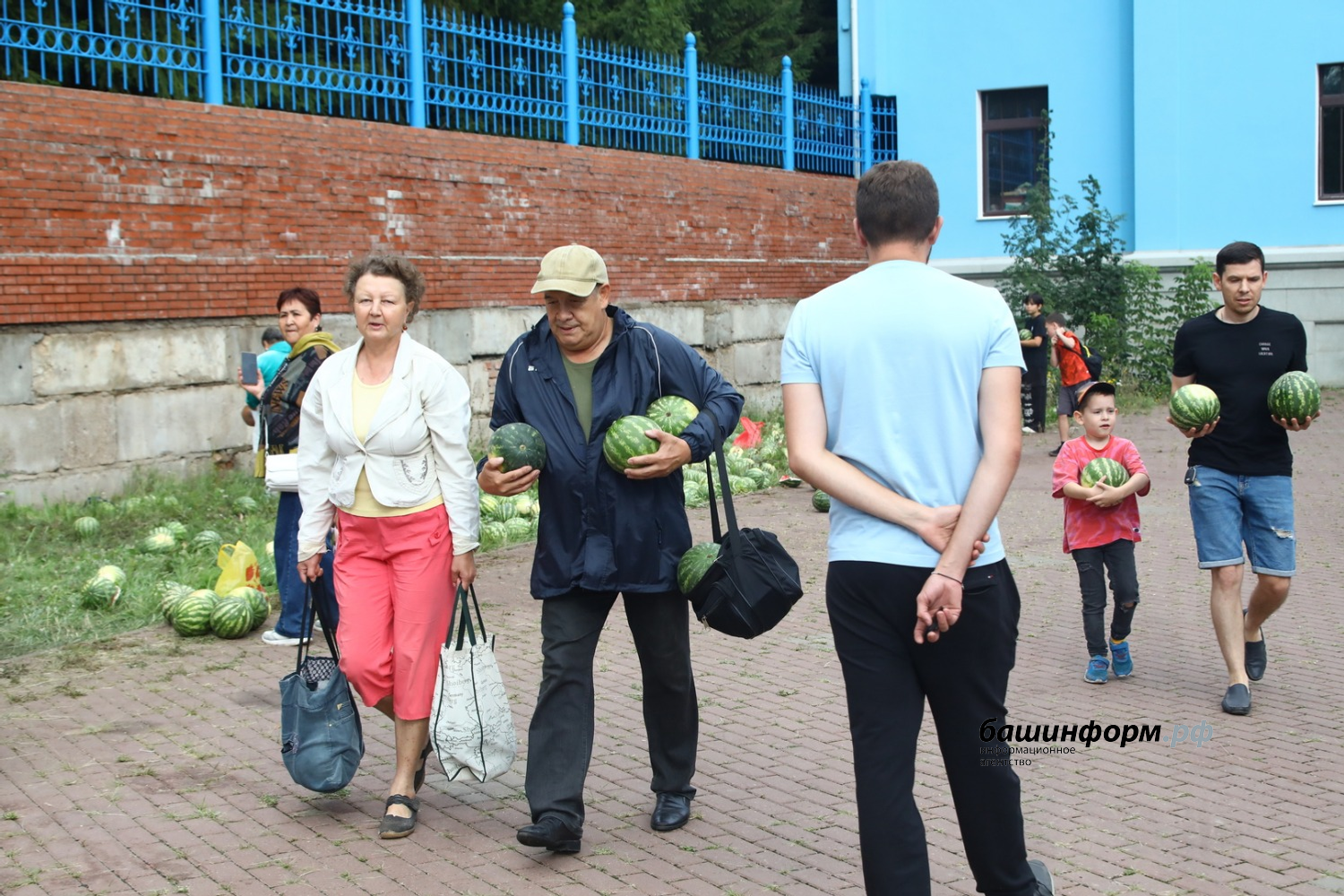 Отметим, что плоды бахчевых выгрузили прямо на территории собора. Как убедился фотокорреспондент агентства, арбузы забирали и прихожане храма, и все желающие.