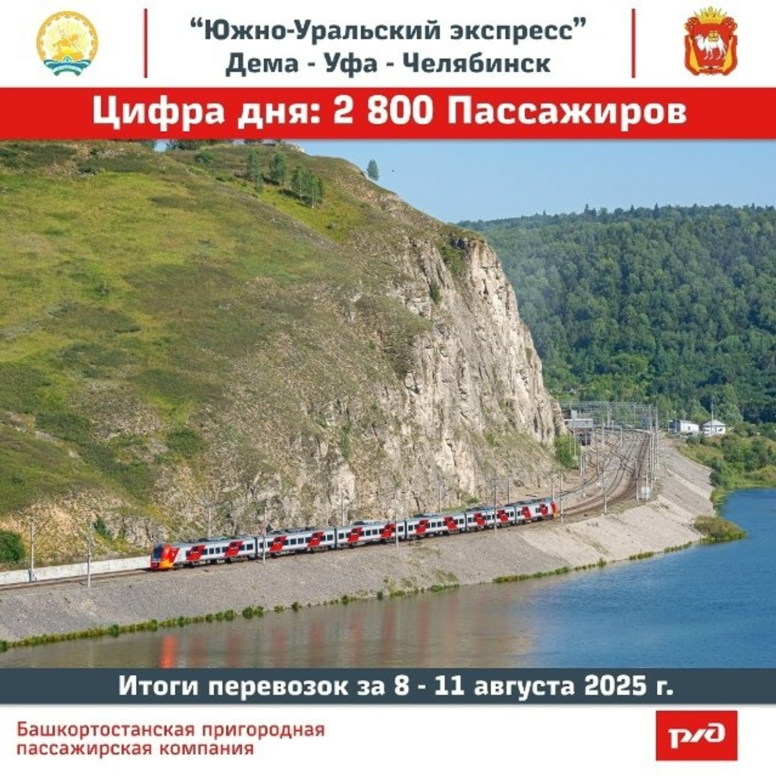 Межрегиональный поезд «Южно-Уральский экспресс» сообщением Дема – Уфа – Челябинск с 8 по 11 августа перевёз 2,8 тысячи пассажиров. Это на 112% больше, чем в первую неделю курсирования, сообщает минтранс республики.