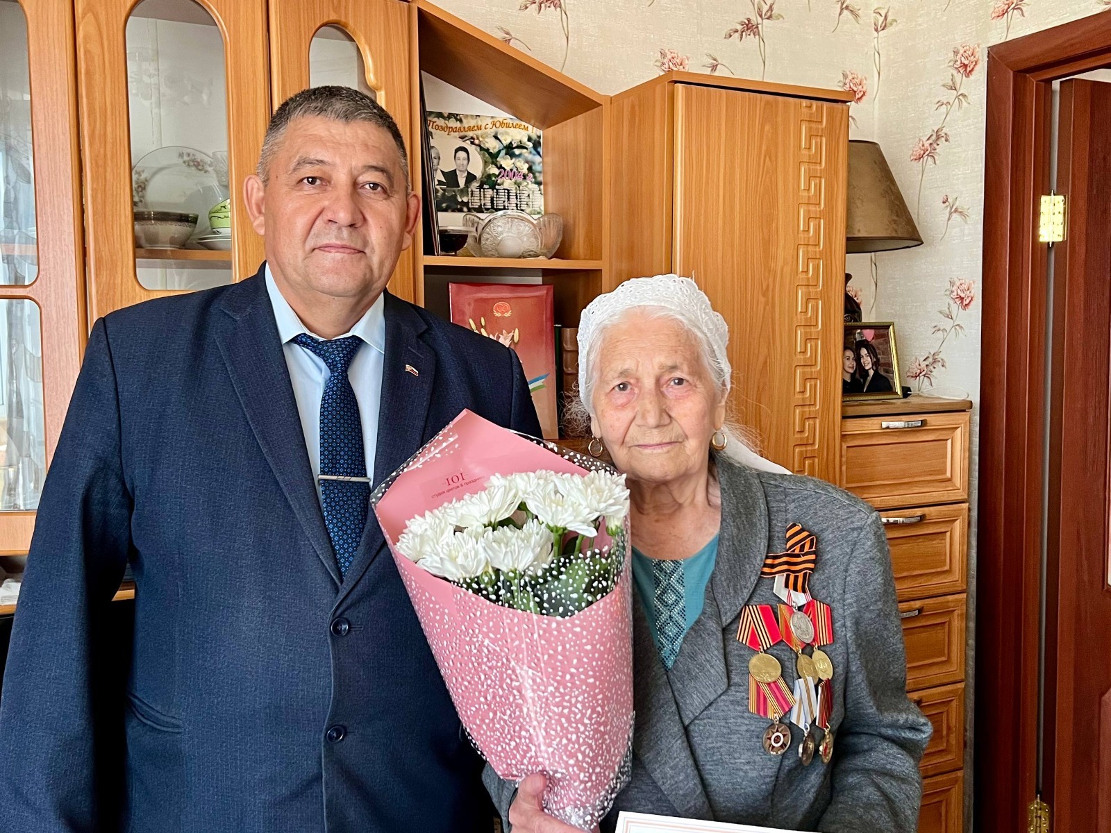 Труженица тыла из Ленинского района Уфы Зубайда Хакимова отметила 95-летний юбилей. Со знаменательной датой юбиляршу поздравил заместитель главы района Мирхат Казаргулов.