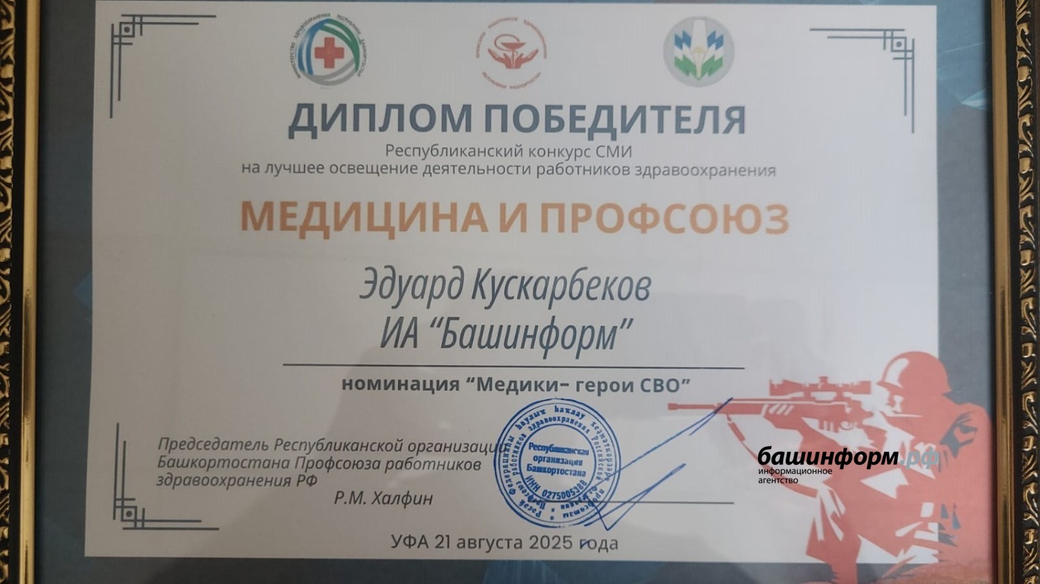 «Башинформ» отмечен победителем в номинации «Лучшее информационное агентство». Журналист агентства Эдуард Кускарбеков стал победителем в новой номинации конкурса «Медики — герои СВО».