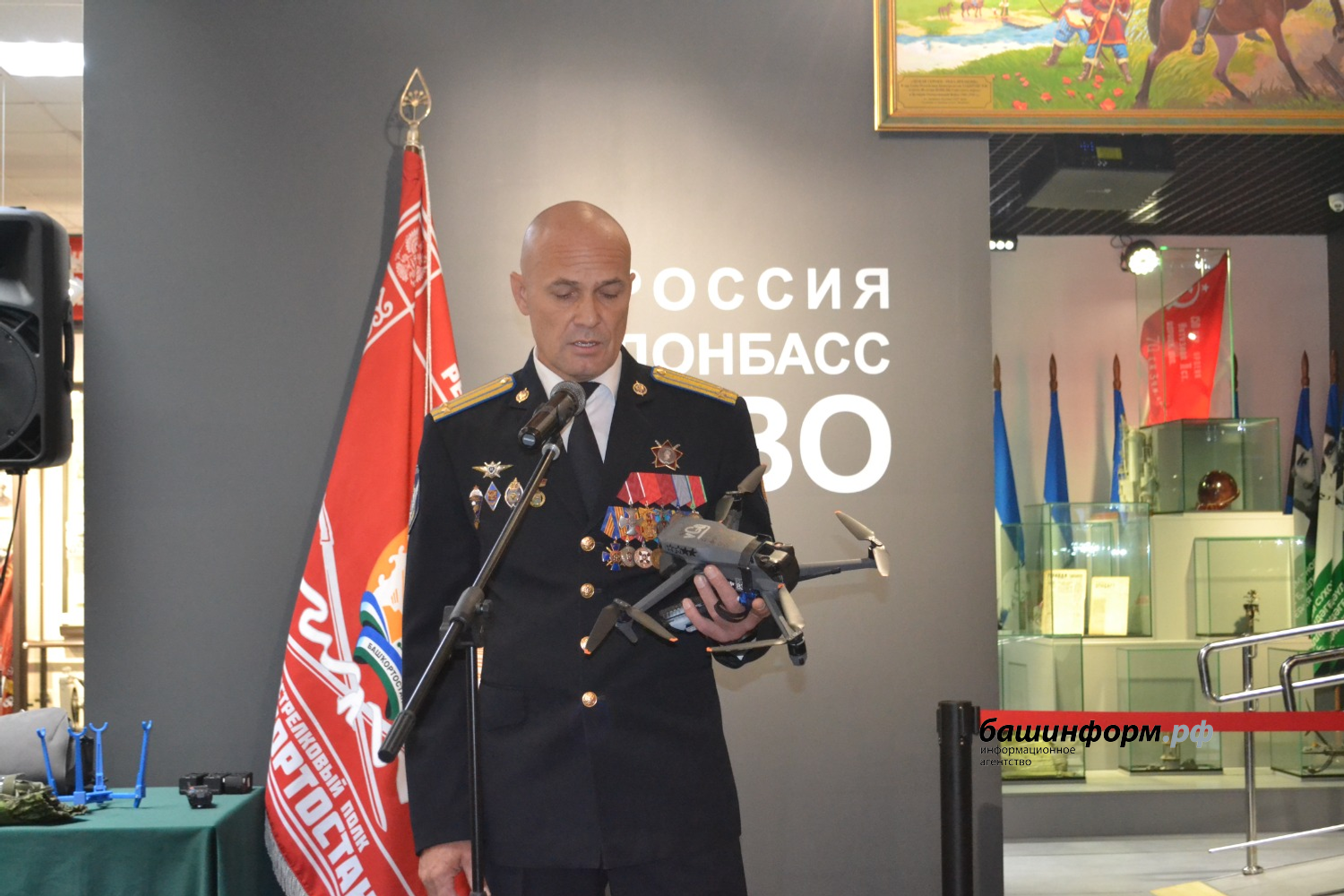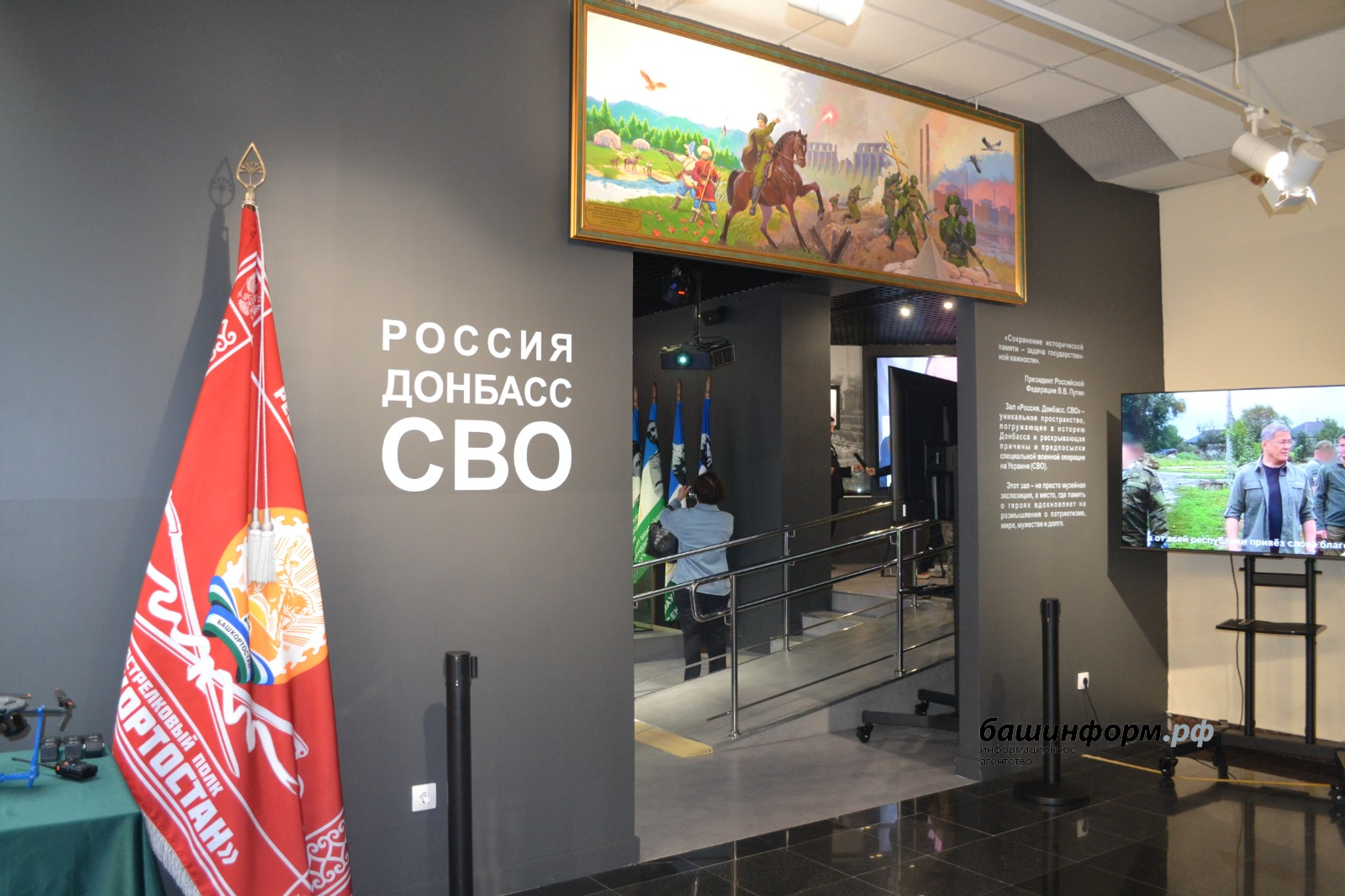 22 августа в Уфе, в Республиканском музее Боевой Славы состоялось открытие экспозиции «Россия. Донбасс. СВО», рассказывающей о предпосылках и истории специальной военной операции России на Украине, а также о ее участниках.