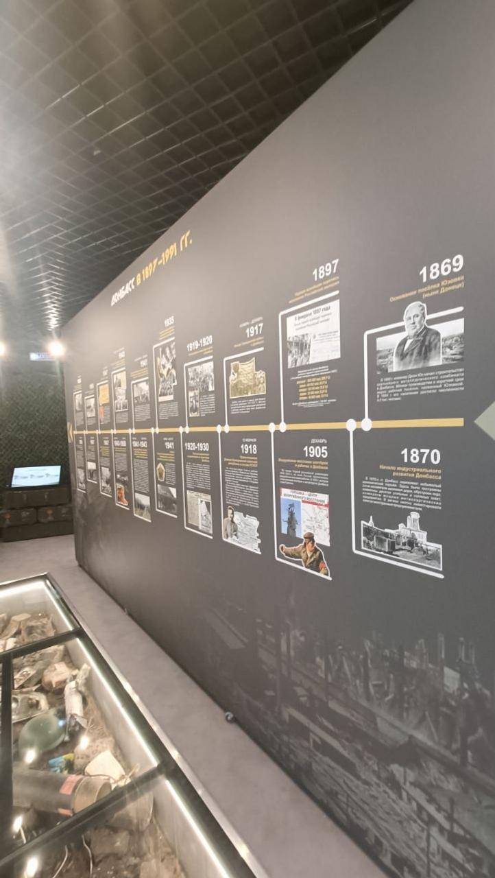 На выставке представлены три зоны: Донбасс в 1897–1991 гг., Донбасс в 1991–2022 гг. и Специальная военная операция. Экспозиция занимает два зала. Первый зал оформлен с использованием современных технологий: светодиодных экранов и арт-объектов, создающих атмосферу времени. Второй — представляет исторический путь региона, подчёркивая причины и контекст начала СВО.