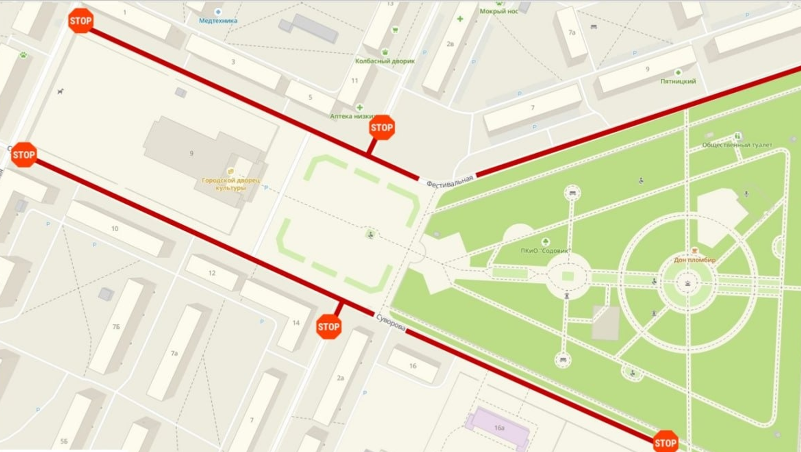 В связи с этим с 12 часов до 18.30 будет перекрыто движение транспорта по ул. Суворова (на участке от ул. Социалистической до ул. Пионерской) и по ул. Фестивальной (на участке от ул. Социалистической до ул. Кочетова).