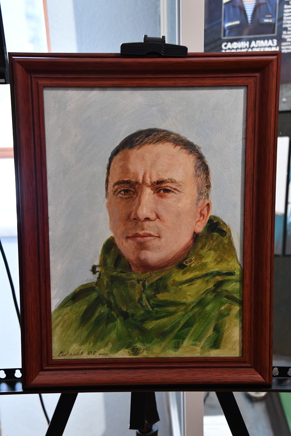 Участник специальной военной операции, член Союза художников России и Творческого союза художников России Юрий Сивачев передал четыре свои картины — портреты сослуживцев из первой фронтовой творческой бригады, уроженцев Башкирии.