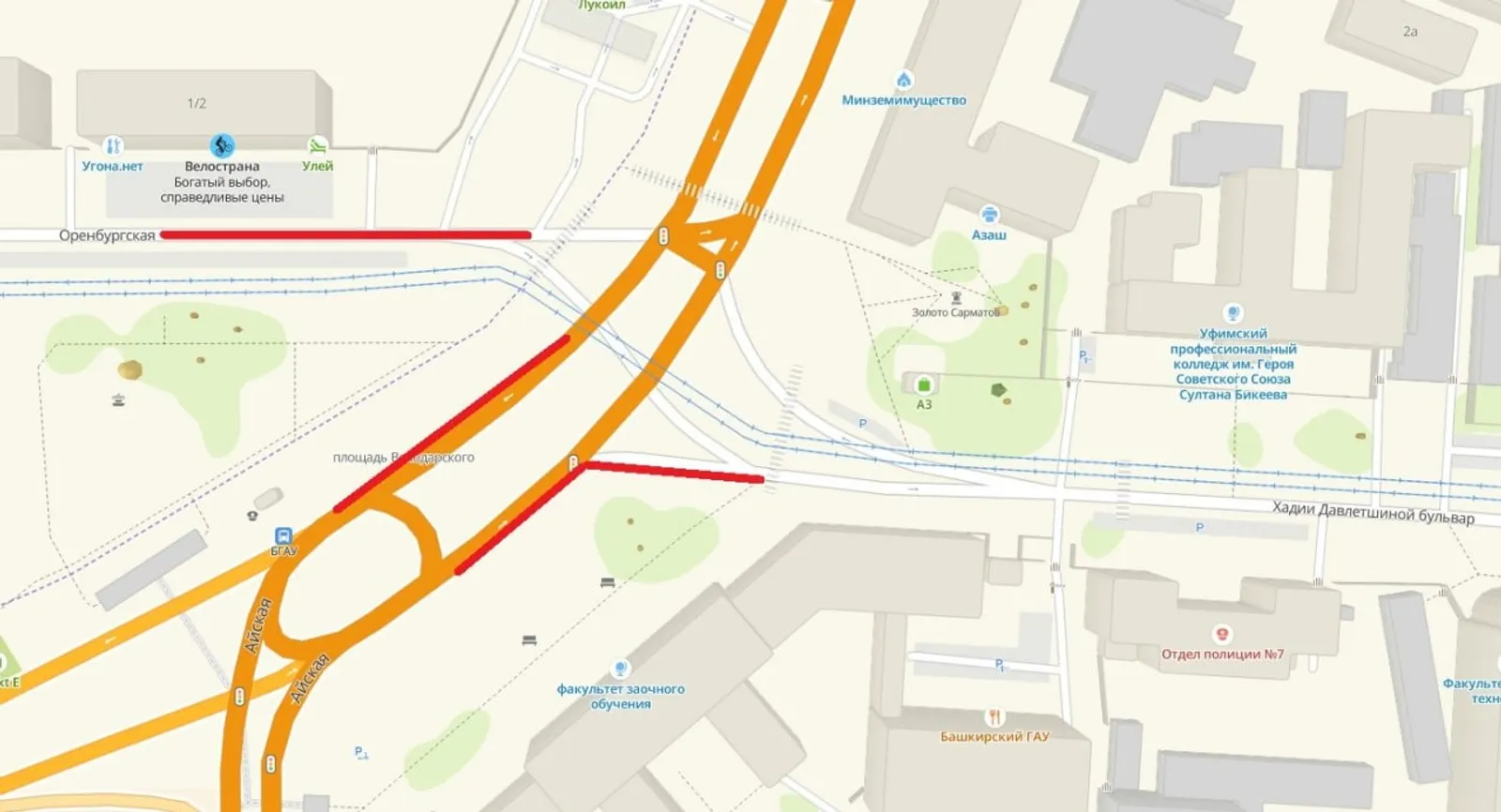 - по нечетной стороне пр. Октября, возле остановки «Башкирский государственный аграрный университет» (частично),