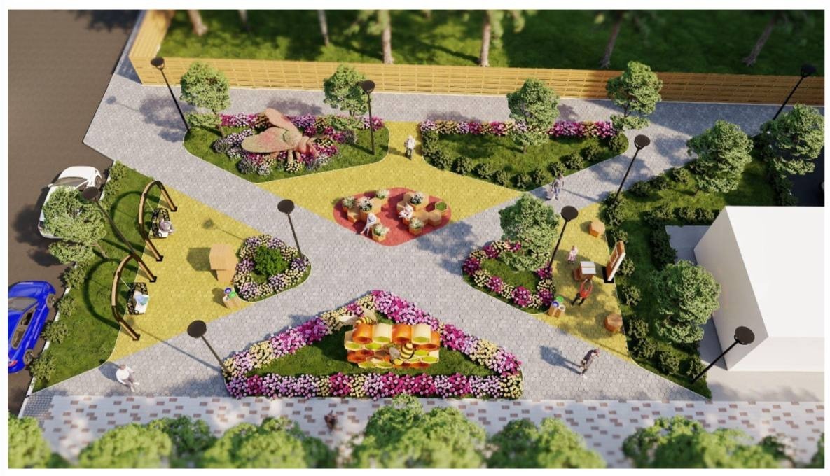 Проект благоустройства, с которым ознакомили жителей, разработал центр городского дизайна. В пространстве появятся арт-объекты «Улей», «Пчела», «Соты» и другие.