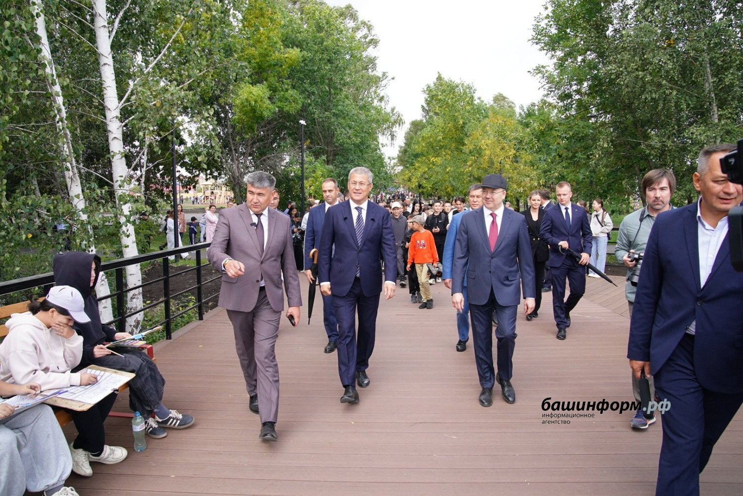 Радий Хабиров: У меня душа сегодня радуется. Я помню, как мы приходили в парк, он был такой заросший. Сюда и небезопасно было приходить. Сейчас же тут уже есть дорожки, освещение, безопасность, камеры, какие-то уже развлечения для детей, хорошая спортивная зона. Безусловно, тут есть еще чем заниматься. Вон сколько территорий. Самое главное – мы дали старт.