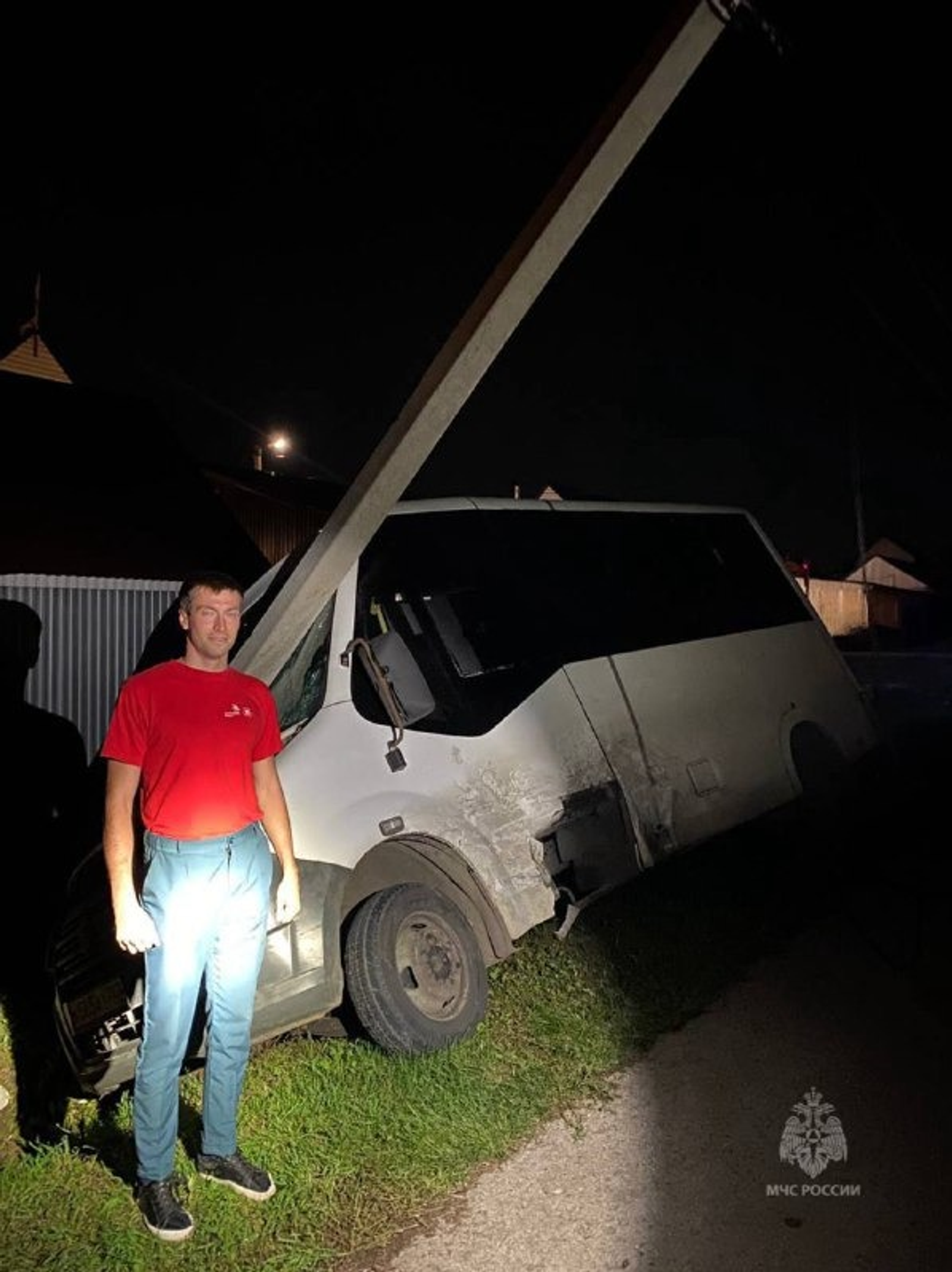 Сотрудник 22 пожарно-спасательного отряда МЧС Егор Умрихин, который был не на смене, стал случайным свидетелем аварии с пассажирским автобусом. Напомним, в посёлке Жуково Уфимского района накануне столкнулись маршрутка «Газель Next» и «Москвич-3». От удара автобус съехал в кювет и по касательной ударился в опору. В салоне было 18 пассажиров.