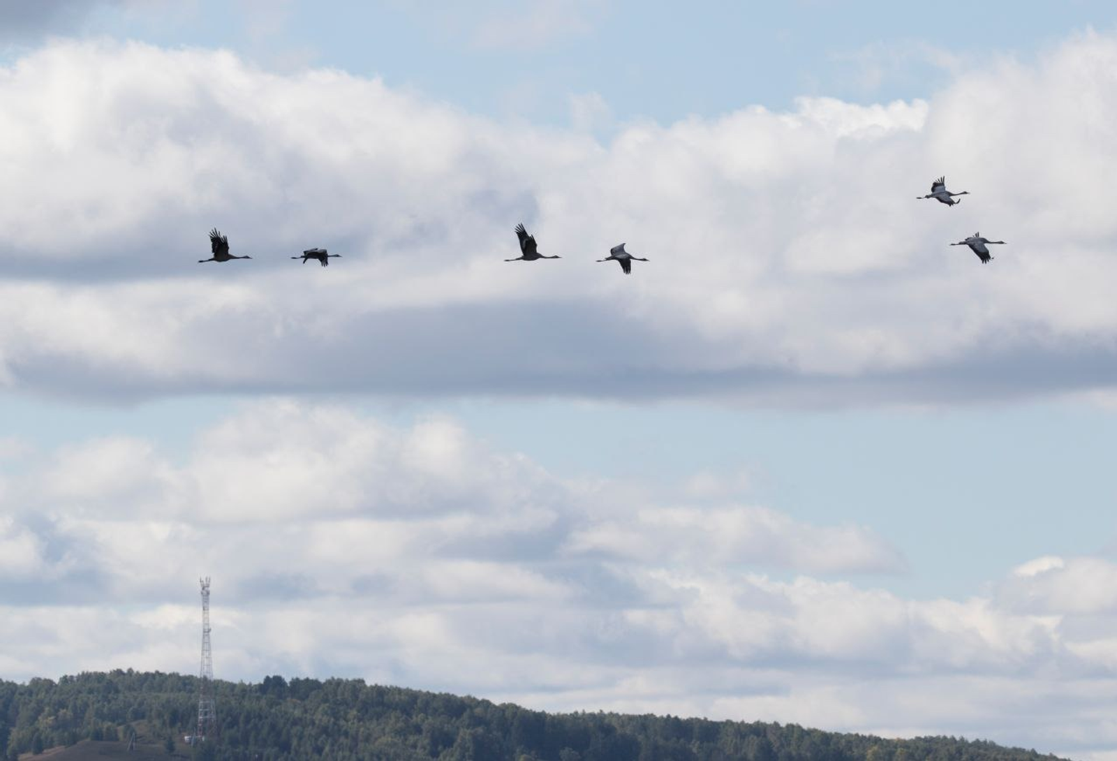 В геопарке «Янган-Тау» в Башкирии начали учёт предотлётных скоплений серых журавлей. Биолог геопарка Полина Полежанкина и сотрудник одноименного санатория Расим Алимиев на квадроцикле осмотрели Приайскую холмисто-увалистую равнину от села Еланыш до окрестностей деревни Шаряково. Протяженность маршрута составила порядка 130 км.