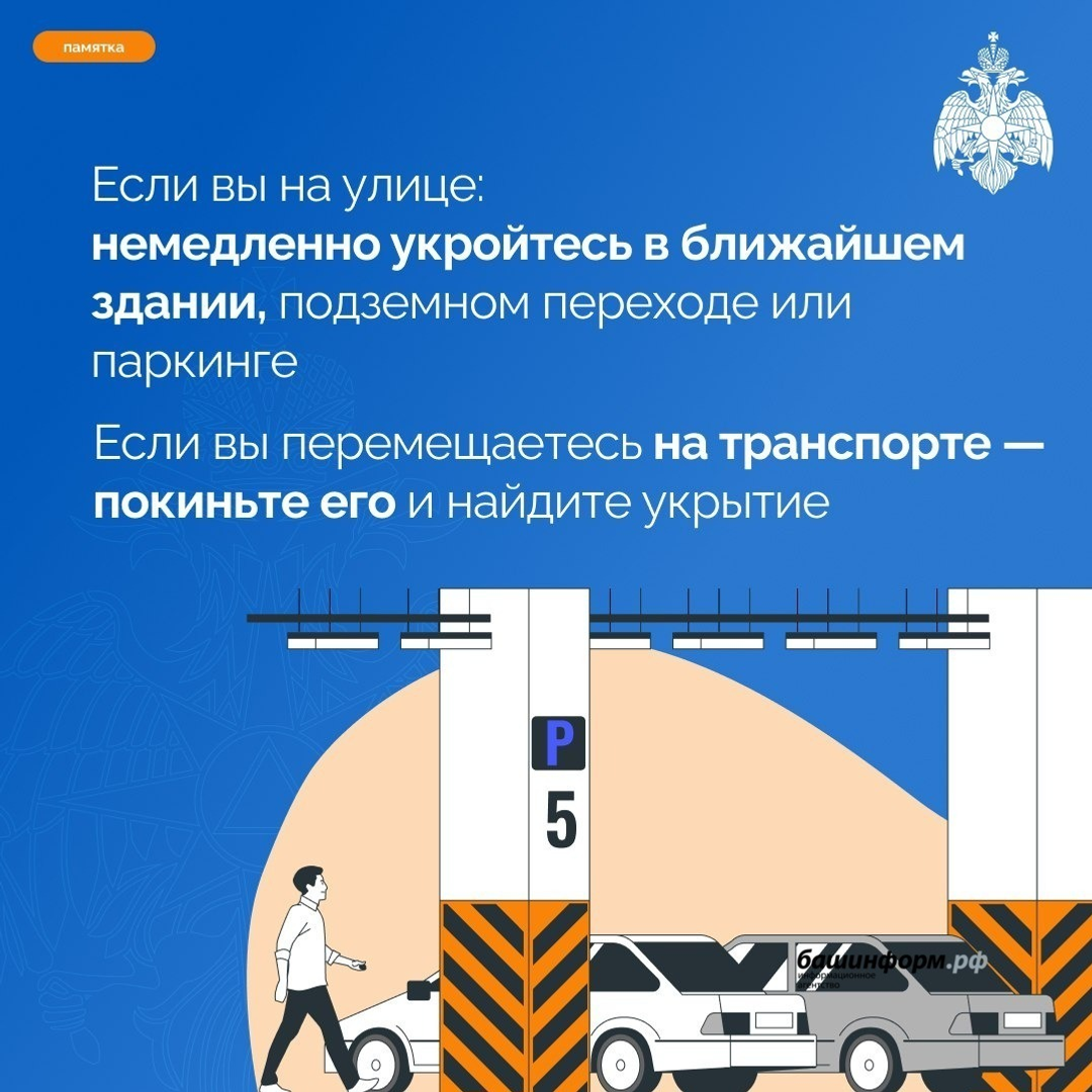 МЧС по Башкортостану опубликовало инфографику, как вести себя при атаке беспилотников (БПЛА).