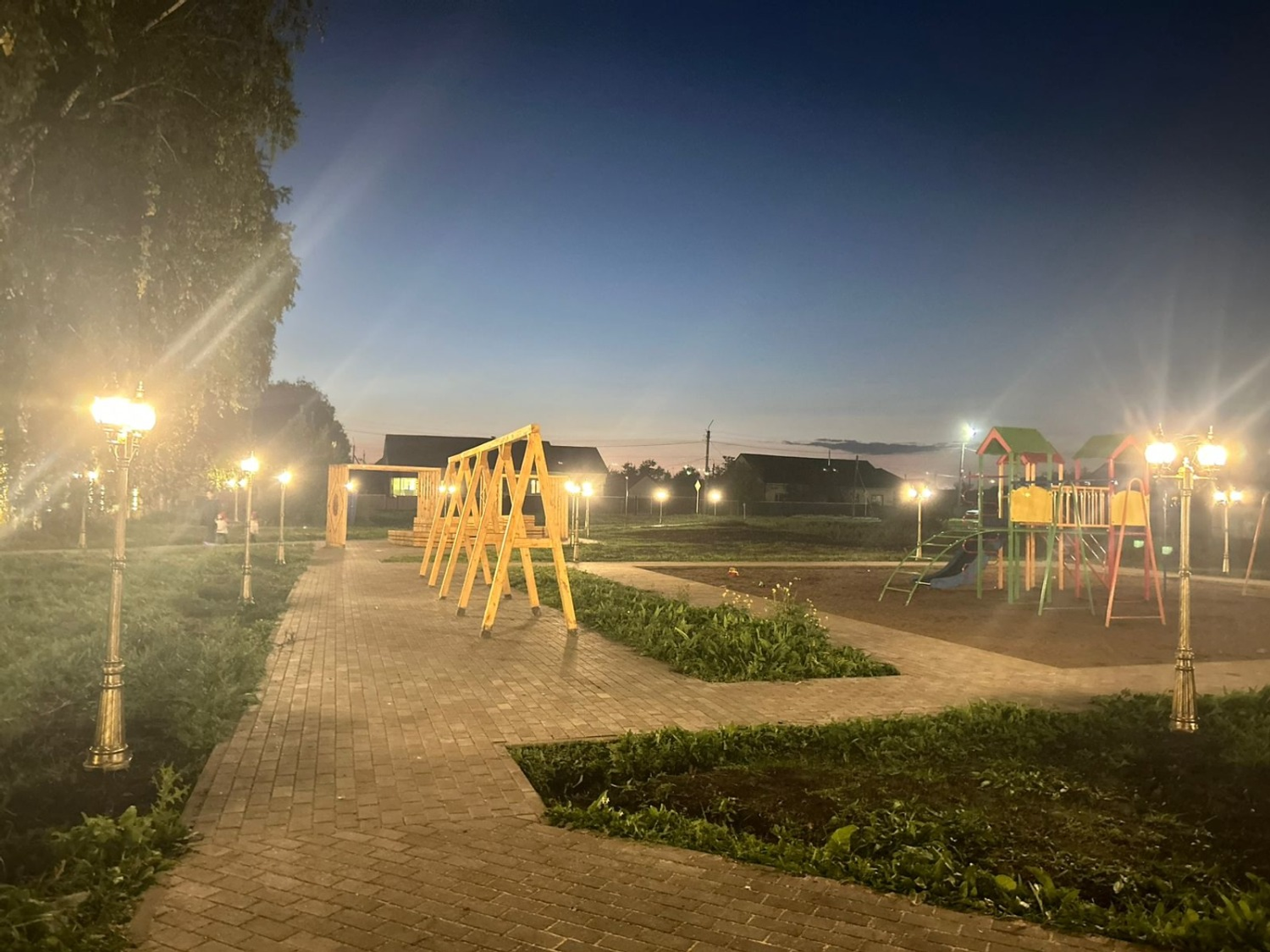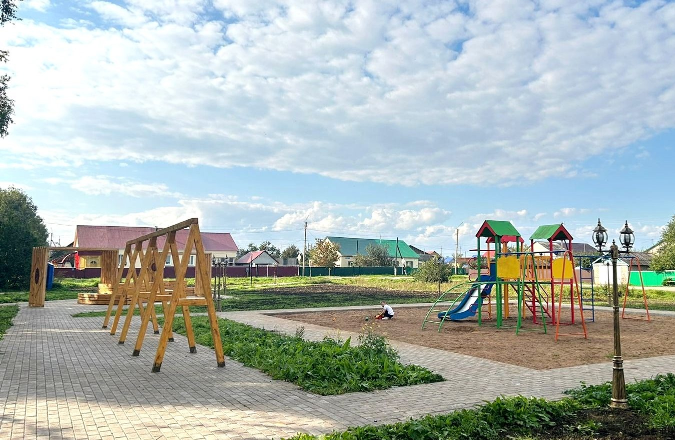 Здесь произведена укладка тротуарной плитки с бордюрным камнем, установлены малые архитектурные формы, детская игровая площадка. Глава района добавил, что в ближайшее время будет подключена электрика и выполнены лакокрасочные работы.