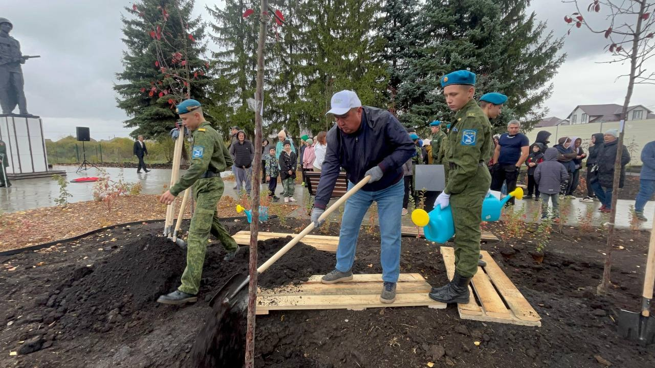 В Калининском районе новые деревья и кустарники высадили на ул. Галечной в сквере памяти воинам, погибшим в Великой Отечественной войне.
