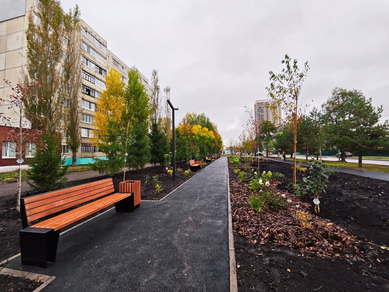 На проспекте Октября появилась Аллея сирени (у дома 15, параллельно голубым елям) и сквер «Солнечный дождь» (дом 138).