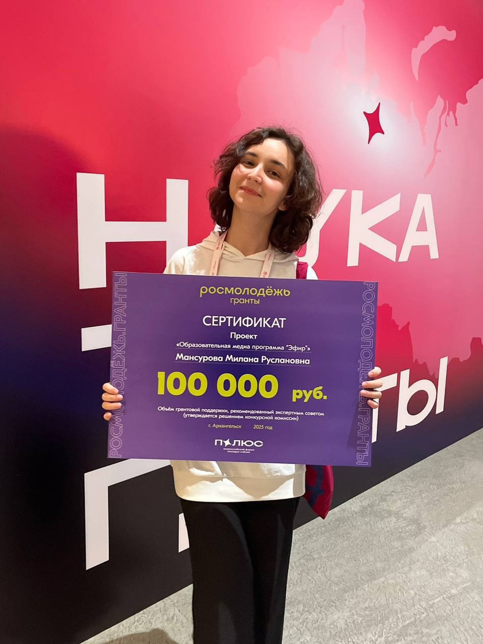Милана получила грант в 100 тысяч рублей на создание образовательной медиапрограммы «Эфир».