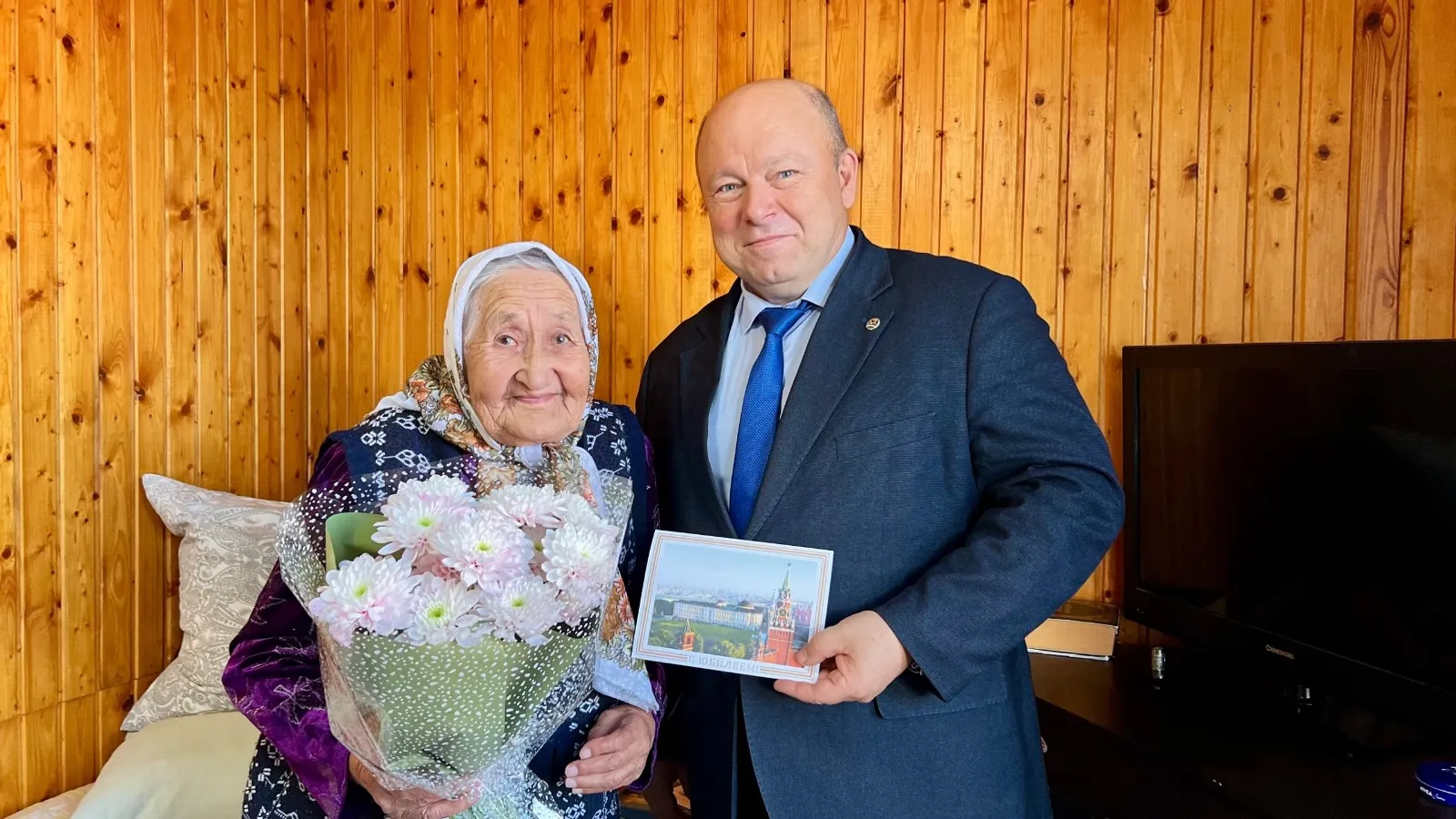 Подарки и поздравление Владимира Путина юбилярше передал замглавы Ленинского района Уфы Андрей Семенов.