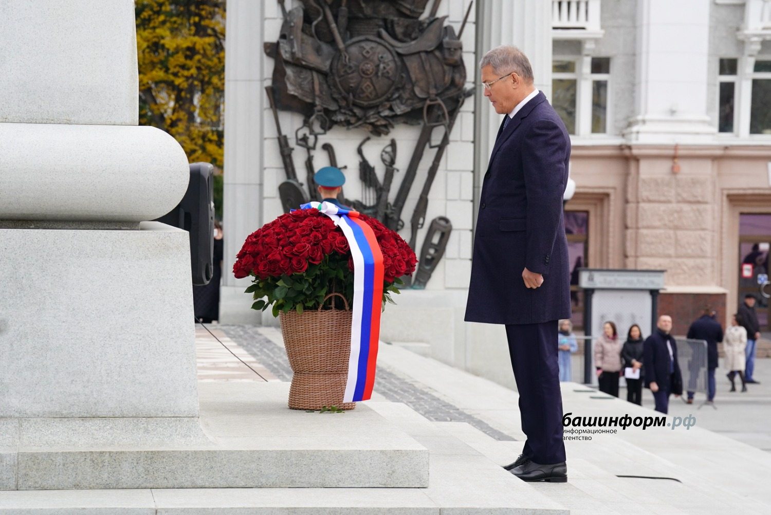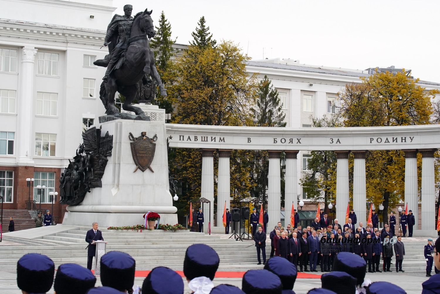 До начала церемонии Радий Хабиров и почетные гости возложили цветы к памятнику легендарного комдива 112-й Башкирской кавалерийской дивизии.