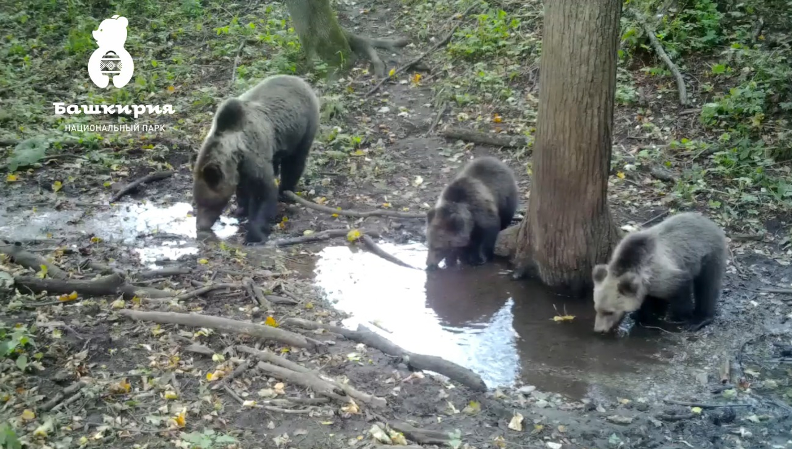 В национальном парке «Башкирия» фотоловушка засняла медвежье семейство, маму и малышей, на водопое. Косолапые пришли на водопой к ручью. Медведица решила тут же отдохнуть. Но озорные малыши покоя не давали: после того, как напились, почесали спинки и искупались, стали приставать к маме.