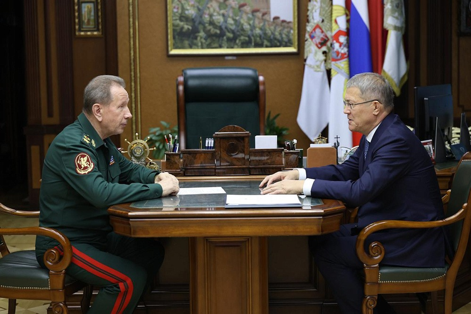 Виктор Золотов поблагодарил руководство Башкортостана за активную поддержку подразделений Росгвардии, размещённых в регионе. В ответ Радий Хабиров отметил важную роль сотрудников службы в обеспечении стабильной обстановки и безопасности жителей республики.
