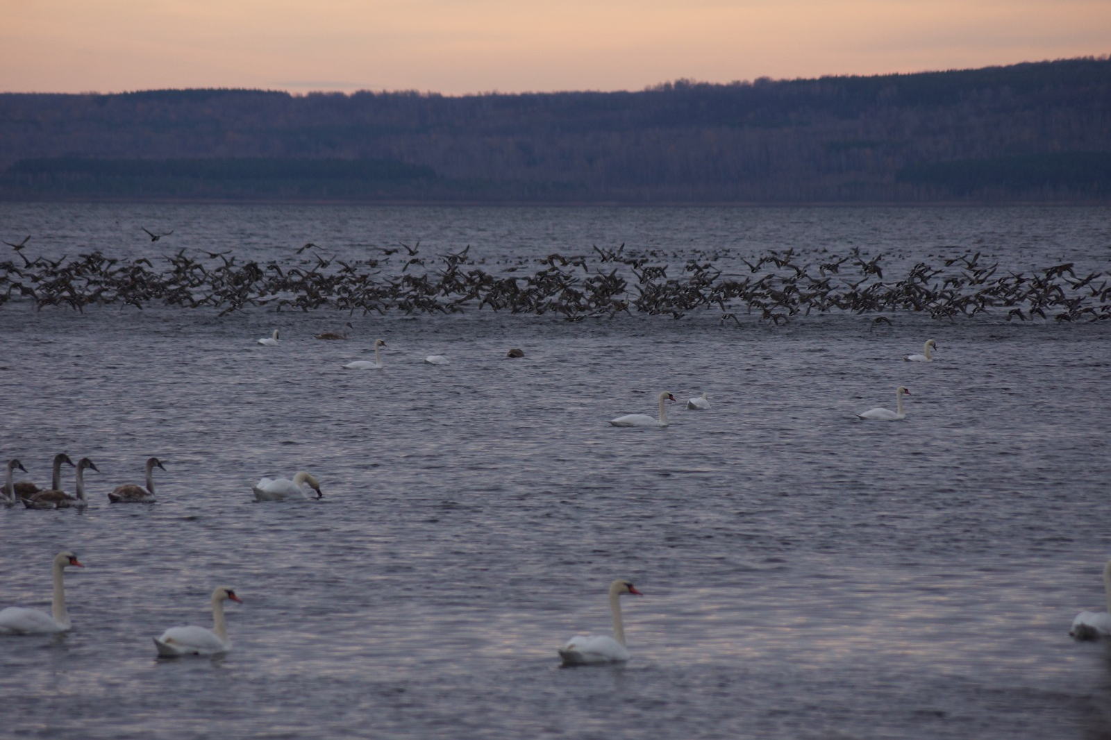 Сотрудники природного парка «Кандрыкуль» сообщили об уникальном природном зрелище: на берегу одноимённого озера собралась стая лебедей, готовящихся к предстоящему перелёту.