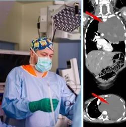 Хирурги РДКБ провели операцию с использованием специального метода «раковины моллюска», позволяющего широко раскрыть грудную клетку и обеспечить максимальный доступ к внутренним органам. Врачам потребовалось проявить максимальную осторожность и точность, чтобы аккуратно освободить важнейшие кровеносные сосуды от опухолевых тканей.