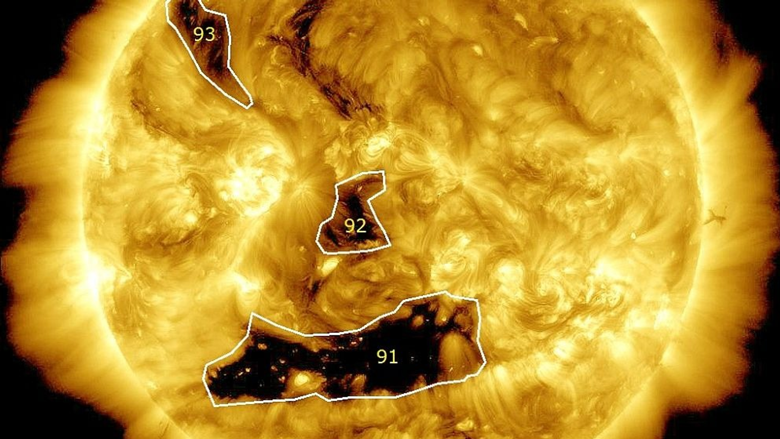 Сейчас сразу две корональные дыры с номерами 91 и 92 выходят в центральную часть солнечного диска, начиная оказывать возможное воздействие на магнитосферу Земли.