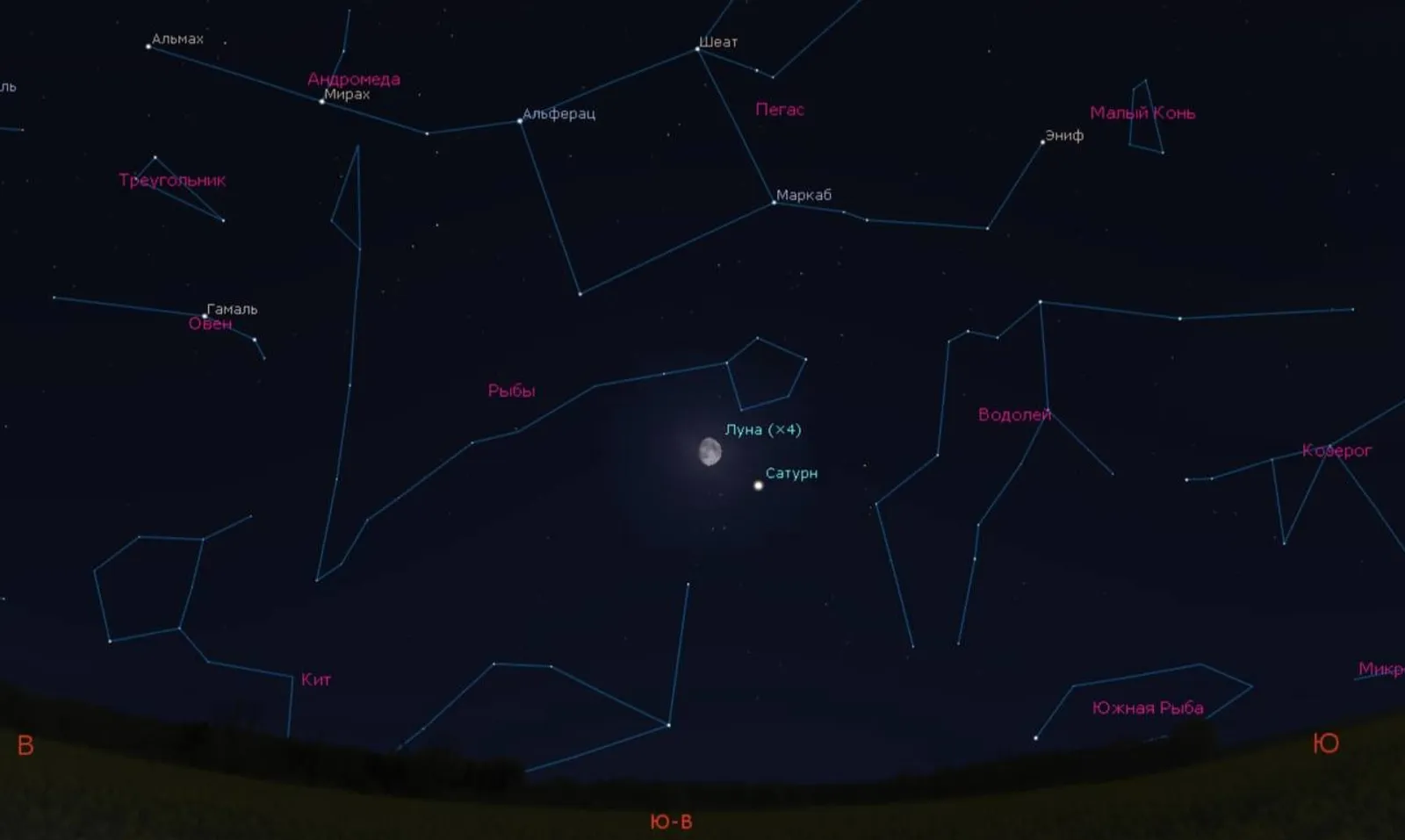 В ночь с 1 на 2 ноября на юго-востоке рядом с Луной будет виден Сатурн. Луна будет в созвездии Рыб, а Сатурн – в Водолее, сообщает Уфимский городской планетарий.
