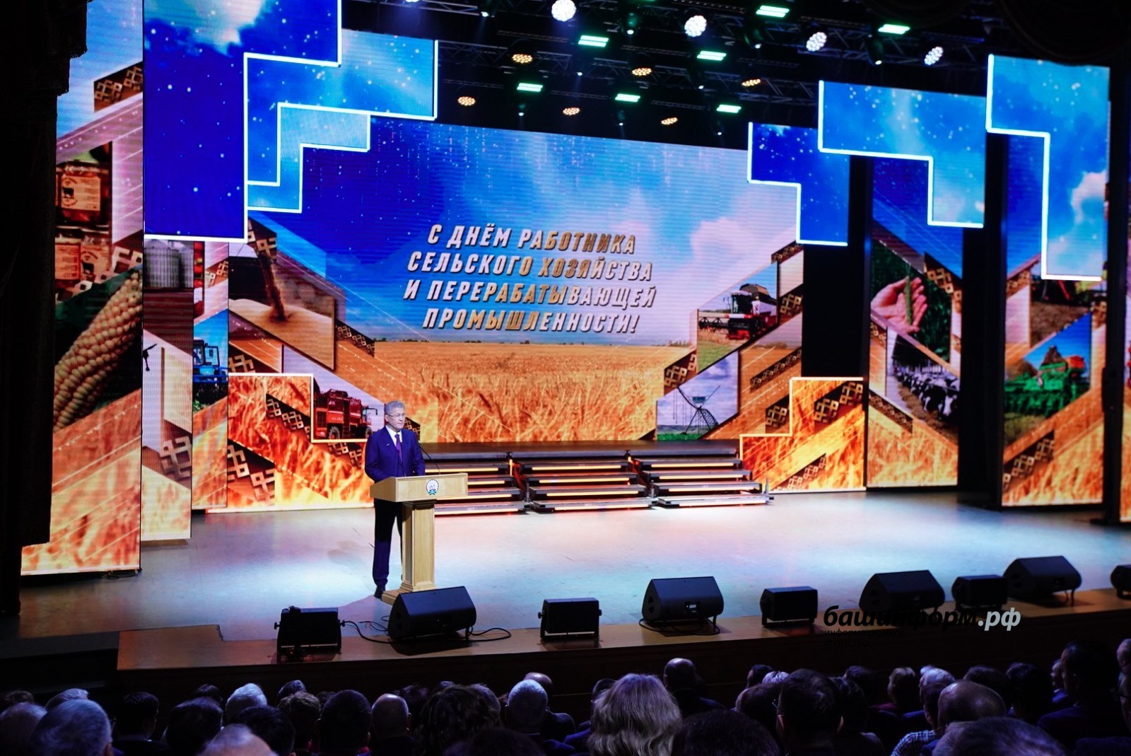 На торжественном мероприятии, посвященном Дню работника сельского хозяйства и перерабатывающей промышленности, которое сегодня прошло в уфимском конгресс-холле «Торатау», Радий Хабиров отметил, что за 9 месяцев этого года объем произведённой сельхозпродукции вырос на 5,3%. Несмотря на все сложности, вновь выращен достойный урожай – более 3,8 млн тонн зерна, 2 млн тонн сахарной свеклы и впервые для нашей республики – около миллиона тонн масличных культур. Глава региона по традиции отметил тех, кто показал лучшие результаты.