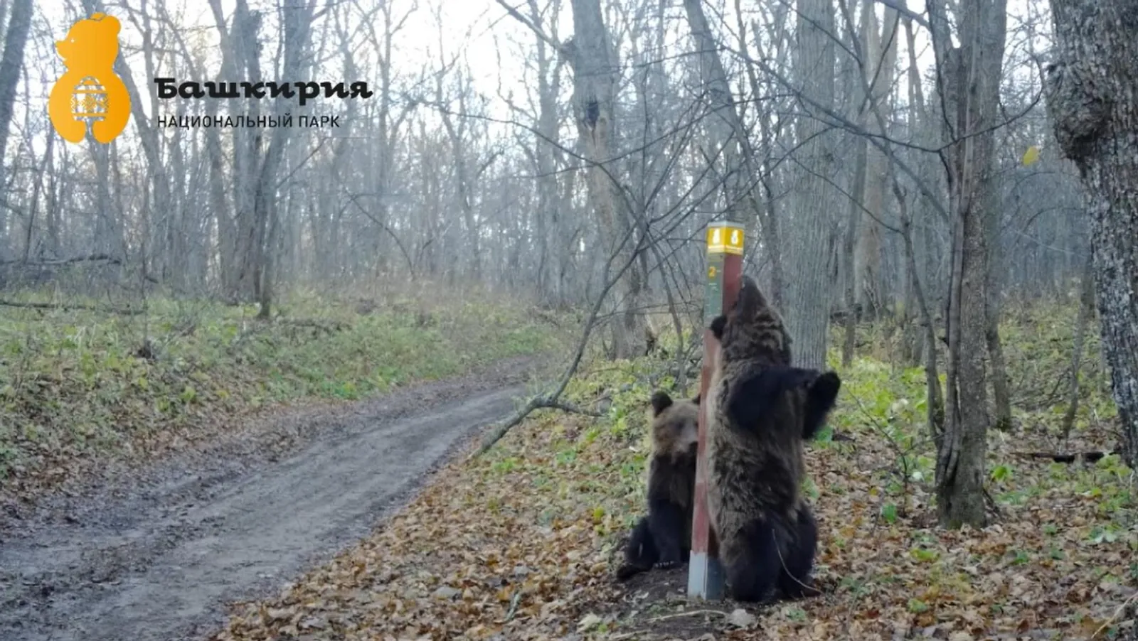 Как отметили в нацпарке, медвежатам всего по два года, но они уже ведут себя как настоящие хозяева леса, маркируя указательный столб своими запахами. В этом возрасте косолапые братья и сёстры нередко держатся вместе: играют, ищут корм, избегают опасностей.
