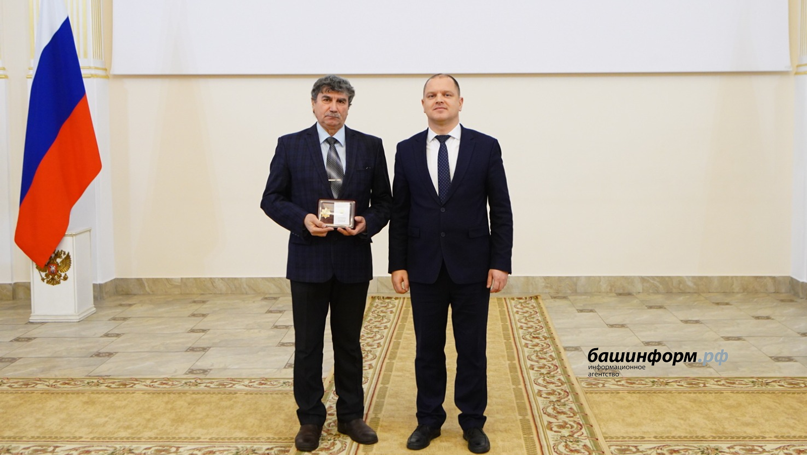 Кирилл Первов вручил нагрудный знак «За заслуги» фотокорреспонденту информационного агентства «Башинформ», заслуженному работнику печати и массовой информации РБ Валерию Шахову.