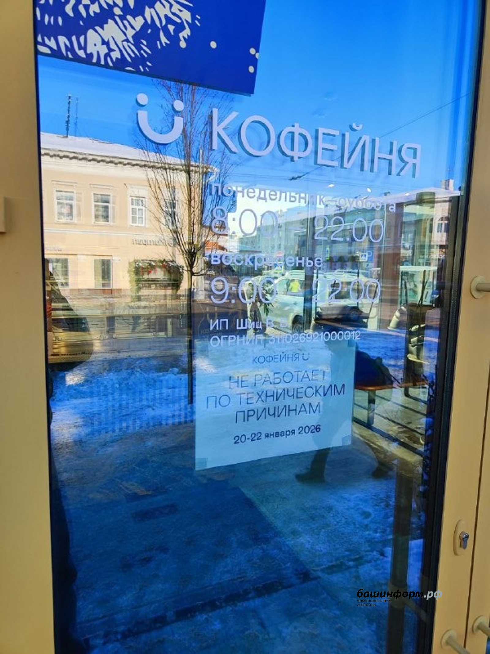 В Уфе через неделю после официального открытия прекратила свою работу кофейня «Duo», которая расположилась в свежевозведенной конструкции прямо на парковке "Гостиного двора". На двери заведения висит объявление, что оно не работает до 22 января по «техническим причинам».