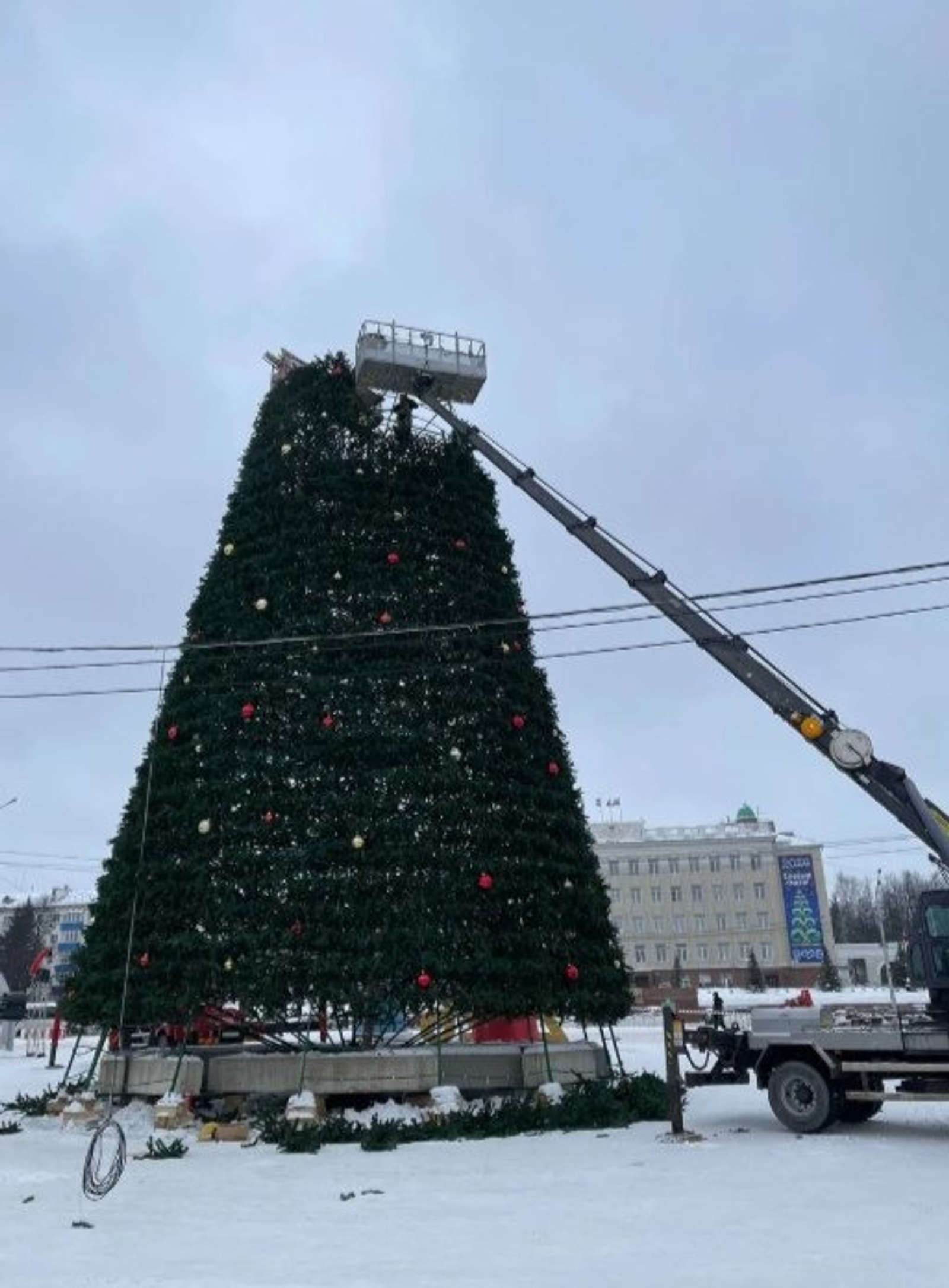 На площади им. Ленина в Уфе начали разбирать главную ёлку. Она простояла два месяца. Вторую главную пиксельную ёлку — у конгресс-холла «Торатау» уже убрали.