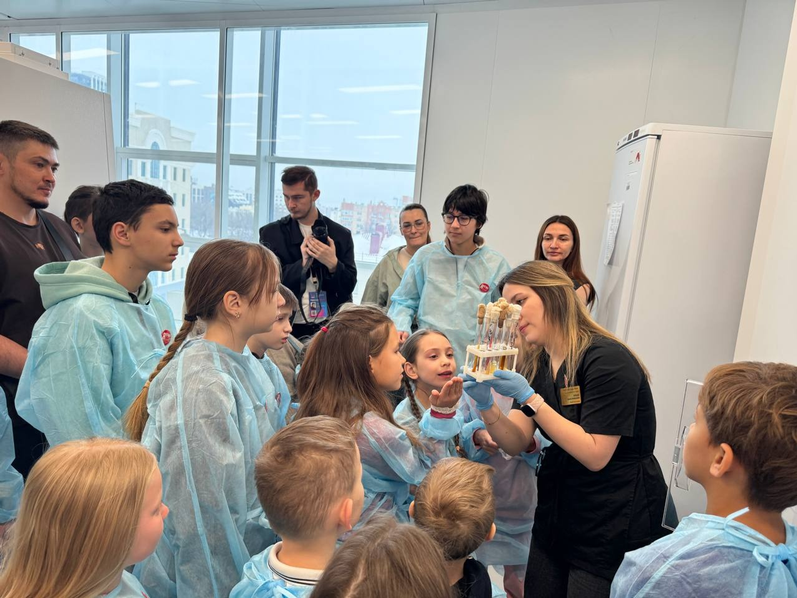Юным гостям показали работу лабораторий аддитивных технологий, поиска малых таргетных молекул, молекулярных гибридов, микробиома человека и математического моделирования. Ребята увидели современное оборудование в действии, узнали о «тайнах микромира» и выполнили простые, но наглядные эксперименты.