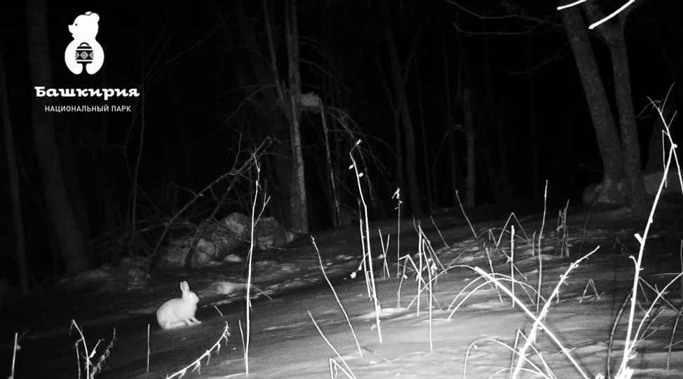 Аппарат записал ночную проходку зайца. Днём беляки обычно прячутся, а по ночам выходят на поиски пропитания. Как пояснили специалисты национального парка, видео показывает типичное поведение этих животных: сначала зайцы осторожно выходят на открытое место, вынюхивают под снегом корм или метки других животных. Часто они садятся «столбиком», чтобы лучше оценить обстановку.