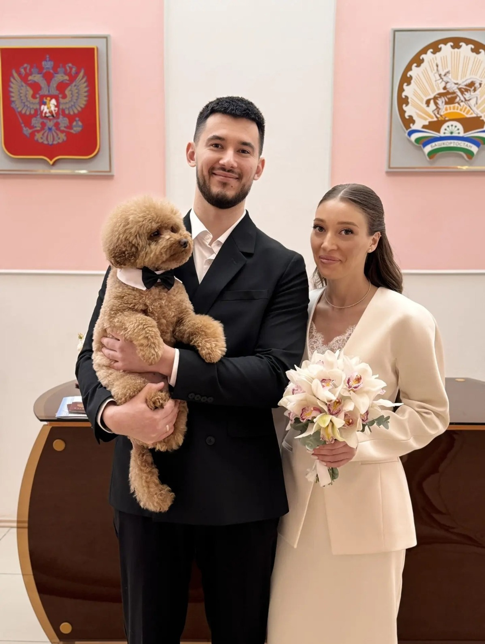 Не обошлось и без сюрпризов, которые добавили официальной церемонии домашнего уюта. Поздравить одну из пар пришел необычный гость — верный четвероногий друг. Мохнатый питомец лично «проконтролировал» создание новой семьи, став живым символом преданности и безусловной любви.