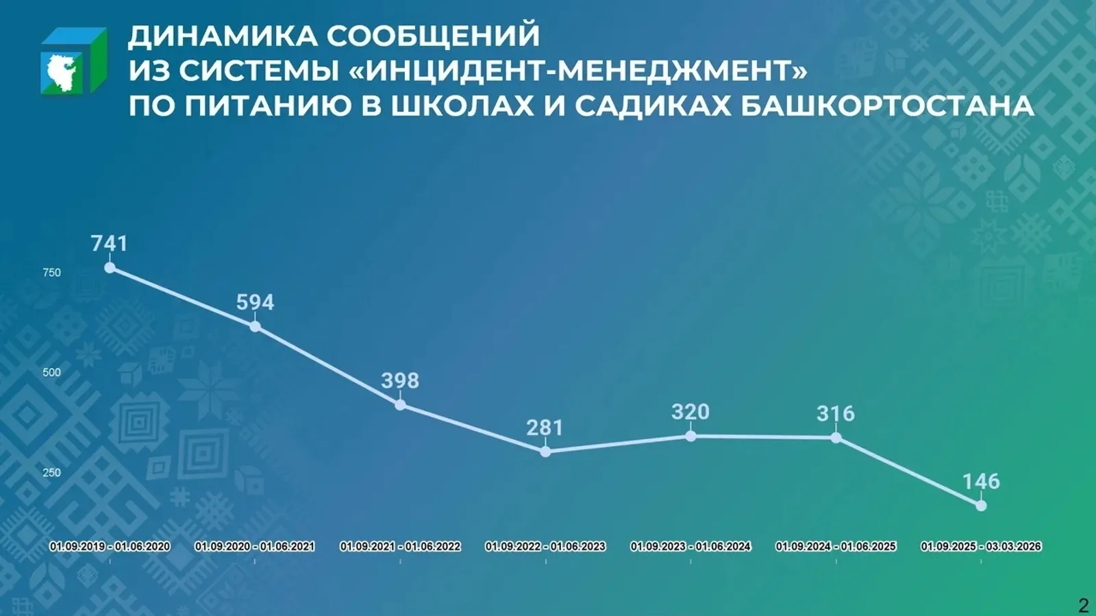 Пятикратное снижение количества обращений по поводу организации питания зафиксировано в школах и детсадах Башкирии. Если в 2019–2020 учебном году системы ЦУР Башкортостана зарегистрировали более 700 жалоб, то за 2025-2026-й их число сократилось до 146.