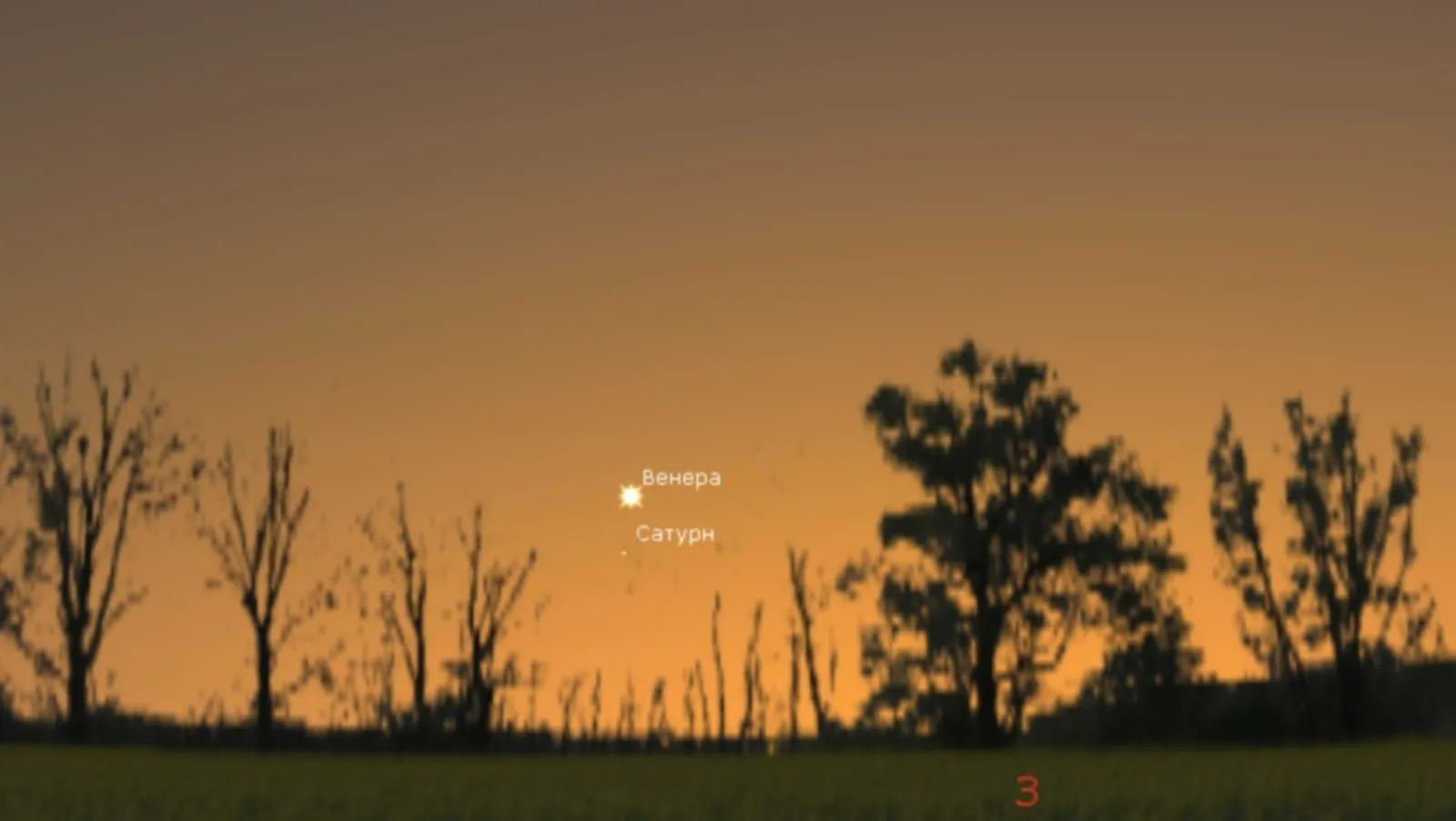 «Посмотрите на запад, в ту сторону, где зашло Солнце. Низко над горизонтом вы увидите яркую звезду — Венеру, а под нею будет видна ещё одна не очень яркая звёздочка — это Сатурн», — рассказали в Уфимском планетарии.