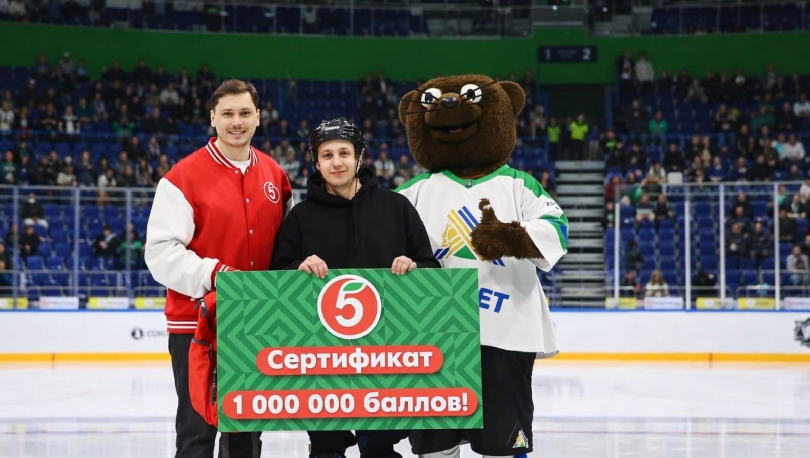 Во время второго перерыва зрителей ждала суперигра «Бросок на миллион»: пятеро счастливчиков по очереди забрасывали шайбы в тренировочные хоккейные ворота, чтобы побороться за главный приз — 1 000 000 баллов на карту «Х5 Клуба». Победителю торжественно вручили сертификат, остальные участники также не остались без подарков.
