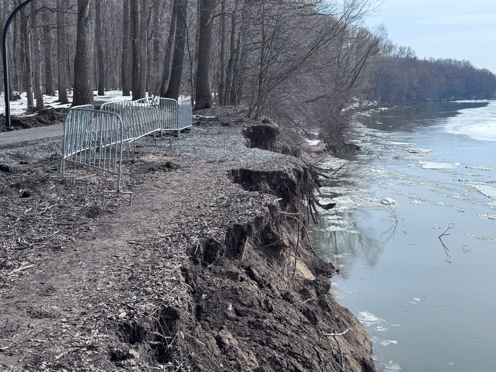 По данным администрации Калининского района, в связи со сложившейся паводковой ситуацией произошло размытие берега реки Уфы и обвал грунта на участке возле тропы «Теплая» в районе гребного канала в микрорайоне Инорс.