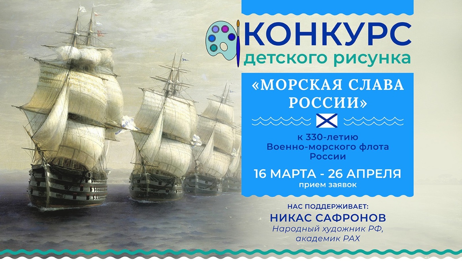Конкурс «Морская слава России» приурочен к празднованию 330-летия Военно-морского флота России. Творческое состязание направлено на укрепление гражданско-патриотических ценностей и формирование среди детей и подростков интереса к истории и традициям морской славы России, а также популяризацию исторического наследия страны и формирование уважения к защитникам Отечества.