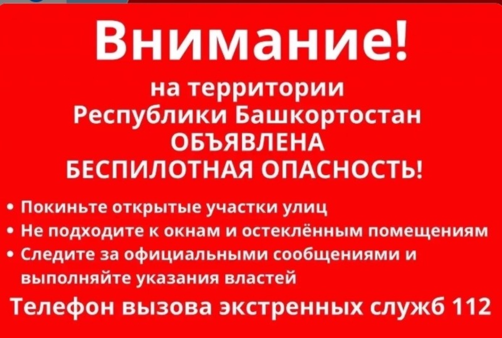 Беспилотная опасность объявлена на территории Республики Башкортостан, сообщают 2 апреля экстренные службы.