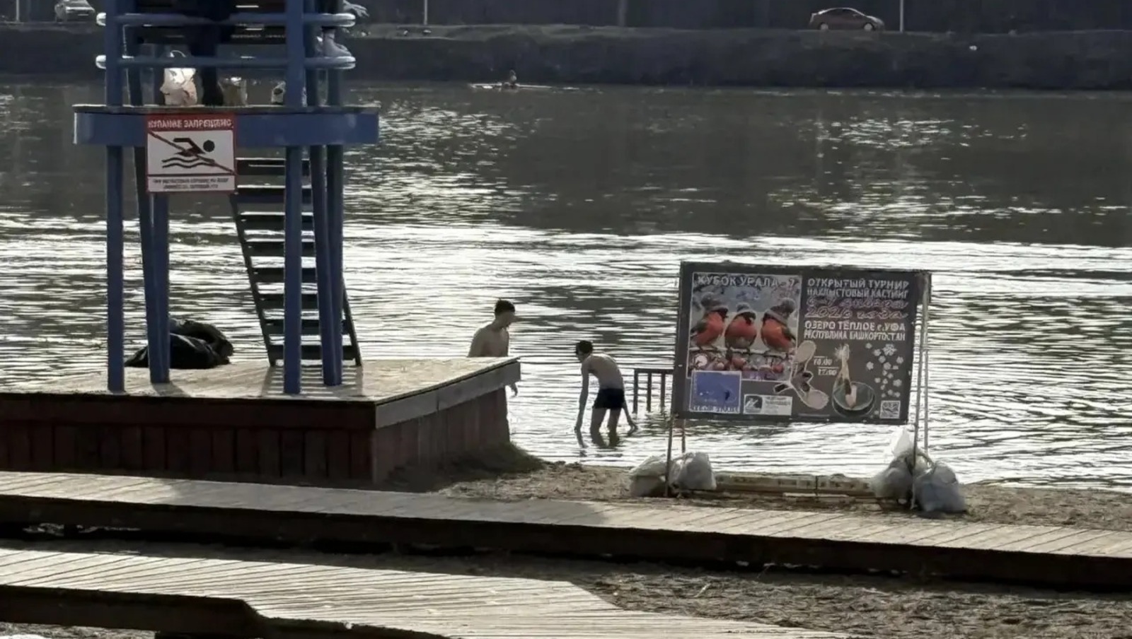 В Уфе на озере Тёплое в Инорсе подростки решили не дожидаться пляжного сезона и начали купаться в воде.