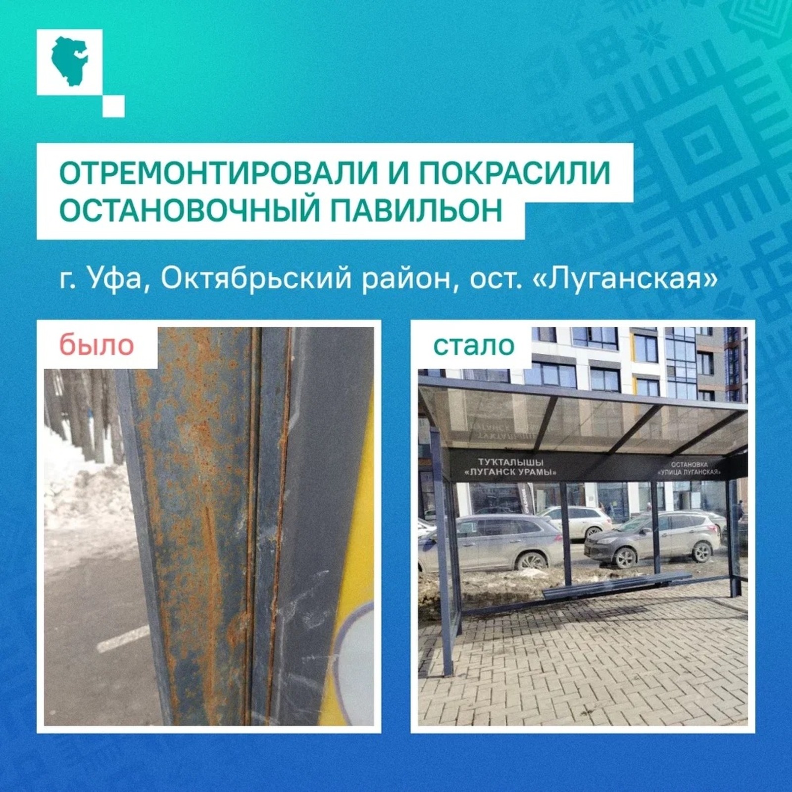Павильон на остановке «Луганской» в Октябрьском районе Уфы отремонтировали после обращения местного жителя в соцсетях. Об этом информирует ЦУР Башкортостана.