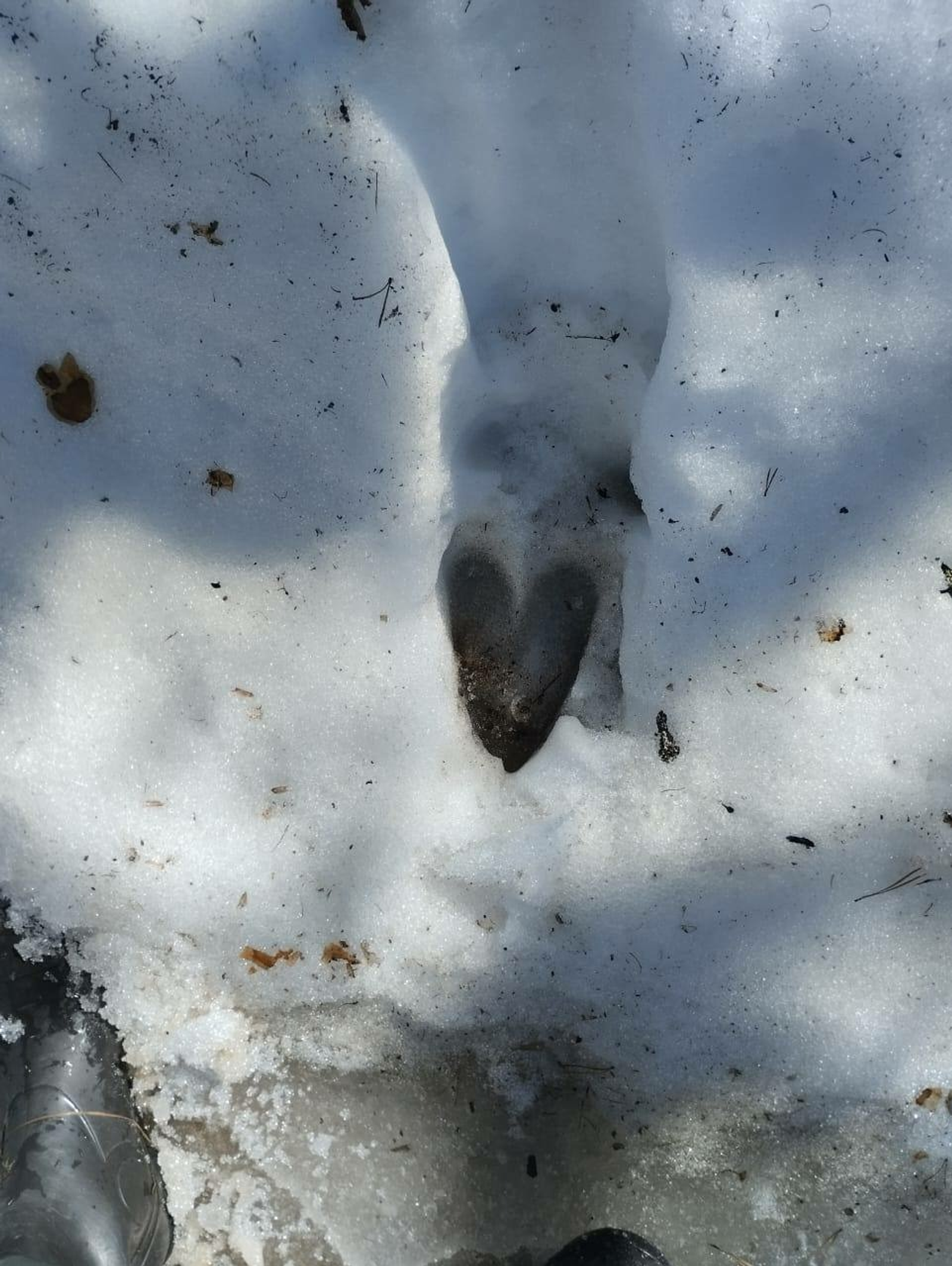 Как пояснили сотрудники государственного природного заповедника «Шульган-Таш», следы на снегу в виде сердечка оставили лоси.