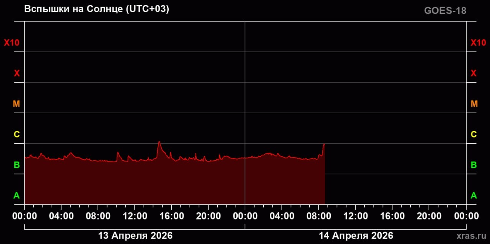 Астрономы обещают спокойную космическую погоду на ближайшие дни. Единственным заметным событием прошедших суток стал крупный выброс плазмы из-за правого края Солнца. Его произвела активная область, которая 1 апреля находилась напротив Земли, а сейчас «ушла» на ту сторону светила. Так что выброс сейчас уходит в противоположную от Земли сторону — прямиком к Венере. Прогноз на сутки — на редкость благоприятный.