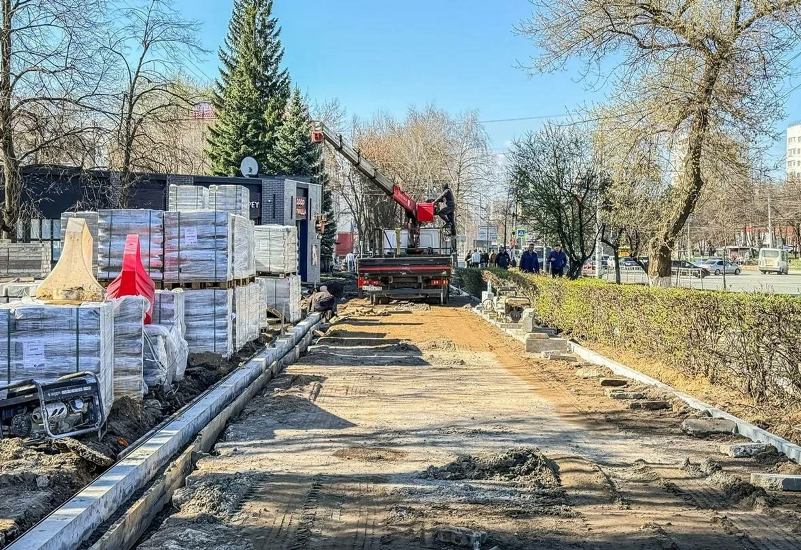 Как отметили в мэрии, главная задача – обеспечить безопасность и комфорт для всех участников движения. Это широкая пешеходная зона из современной плитки, отдельная велодорожка, удобные парковочные зоны. При этом очень важно максимально сохранить существующие кустарники и озеленение. Там, где рабочим пришлось спилить деревья, этой осенью планируется высадить свыше 90 крупномерных лип.