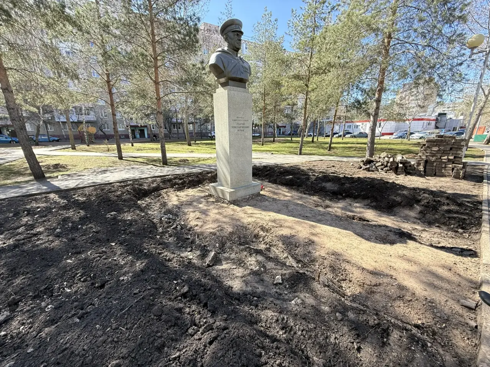 В преддверии Дня Победы началось благоустройство прилегающей территории памятника имени Маршала Жукова. Об этом сообщил глава администрации Октябрьского района Уфы Антон Тарасов.