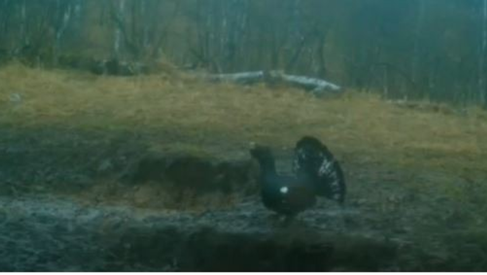 В Бурзянском районе государственному инспектору Сабиту Галину удалось получить уникальные кадры токующего глухаря. Заповедная фотоловушка зафиксировала момент, когда самец, распустив хвост и вытянув шею, исполнял ритуальный танец, напоминающий движения гордых джигитов. Своим поведением и характерными щелкающими звуками он старался привлечь внимание самки.