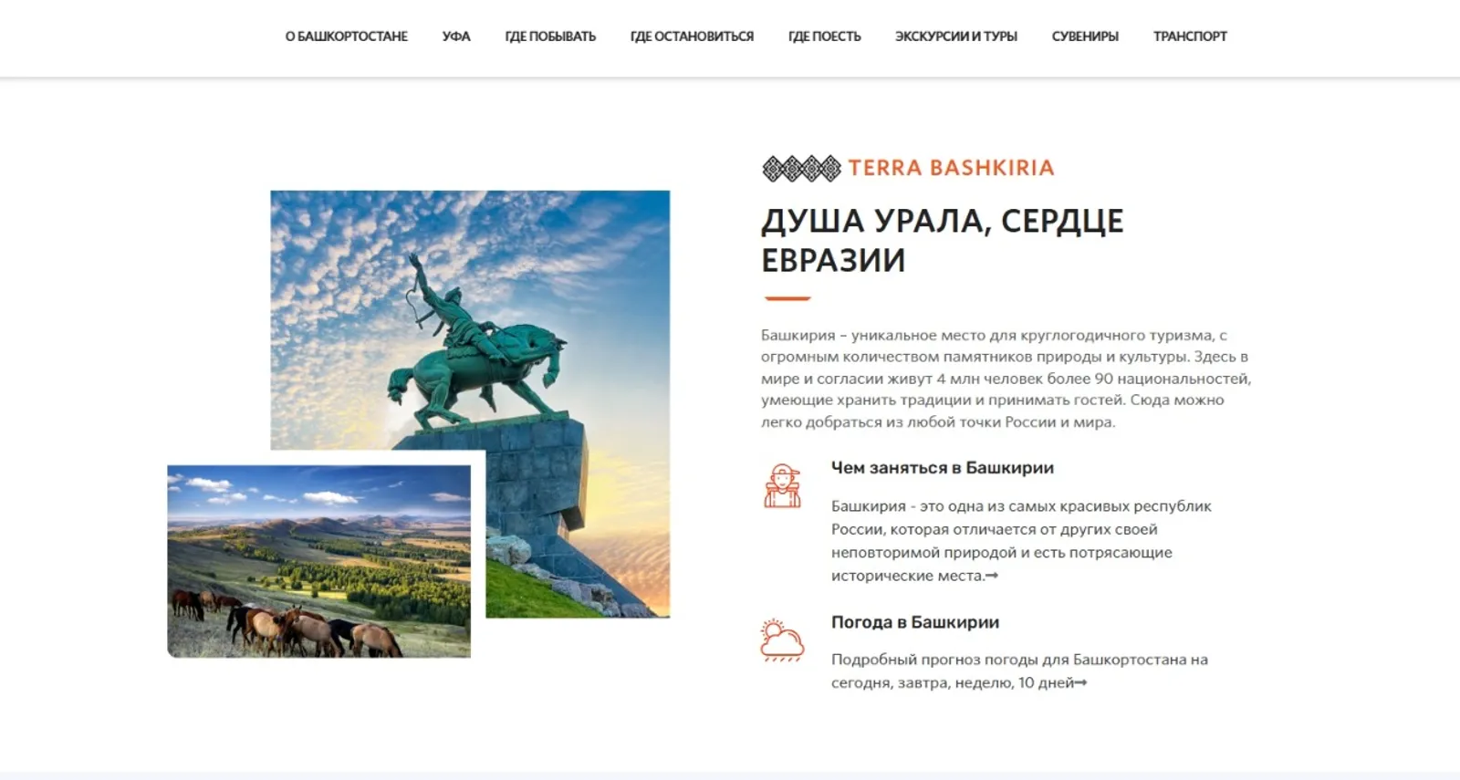 Туристический портал Terra Bashkiria был создан в 2018 году вместе с одноименным брендом для продвижения туристических возможностей республики, на сайте публиковалась информация о маршрутах и достопримечательностях региона.